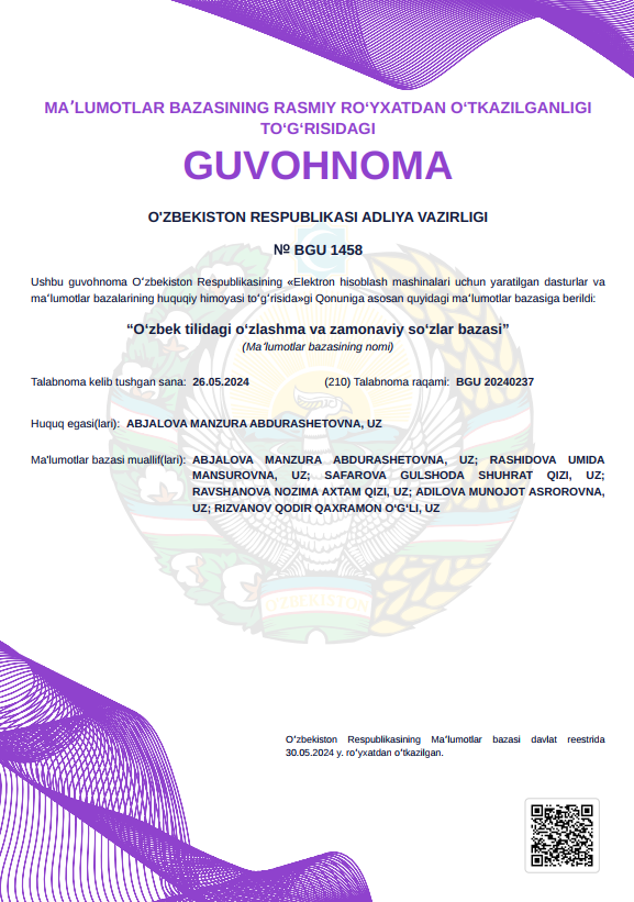 LEXICOGRAPHIC WORDS IN THE NATIONAL CORPORATION OF THE UZBEK LANGUAGE -BASED SEARCH OPPORTUNITIES