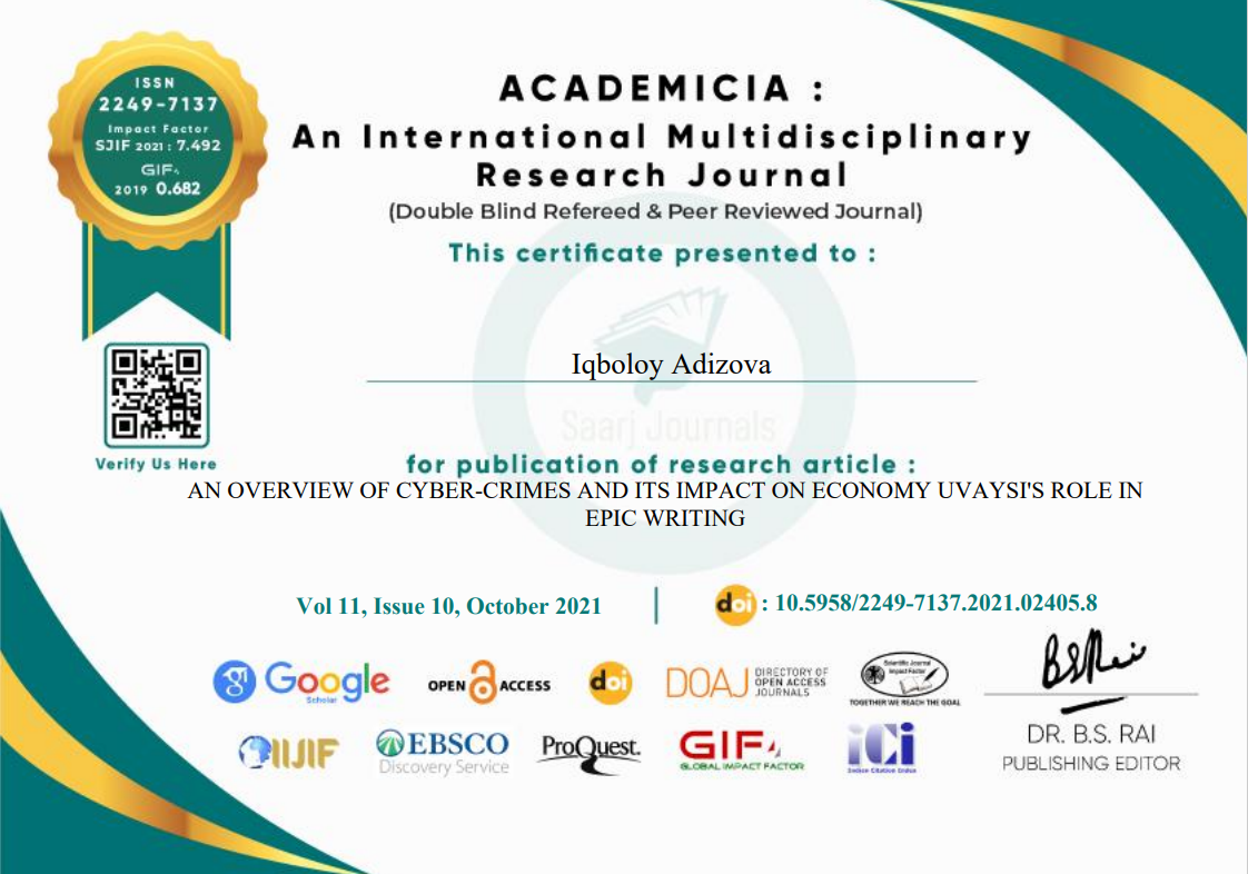An overview of cyber-crimes and its impact on economy Uvaysi's role in epic writing