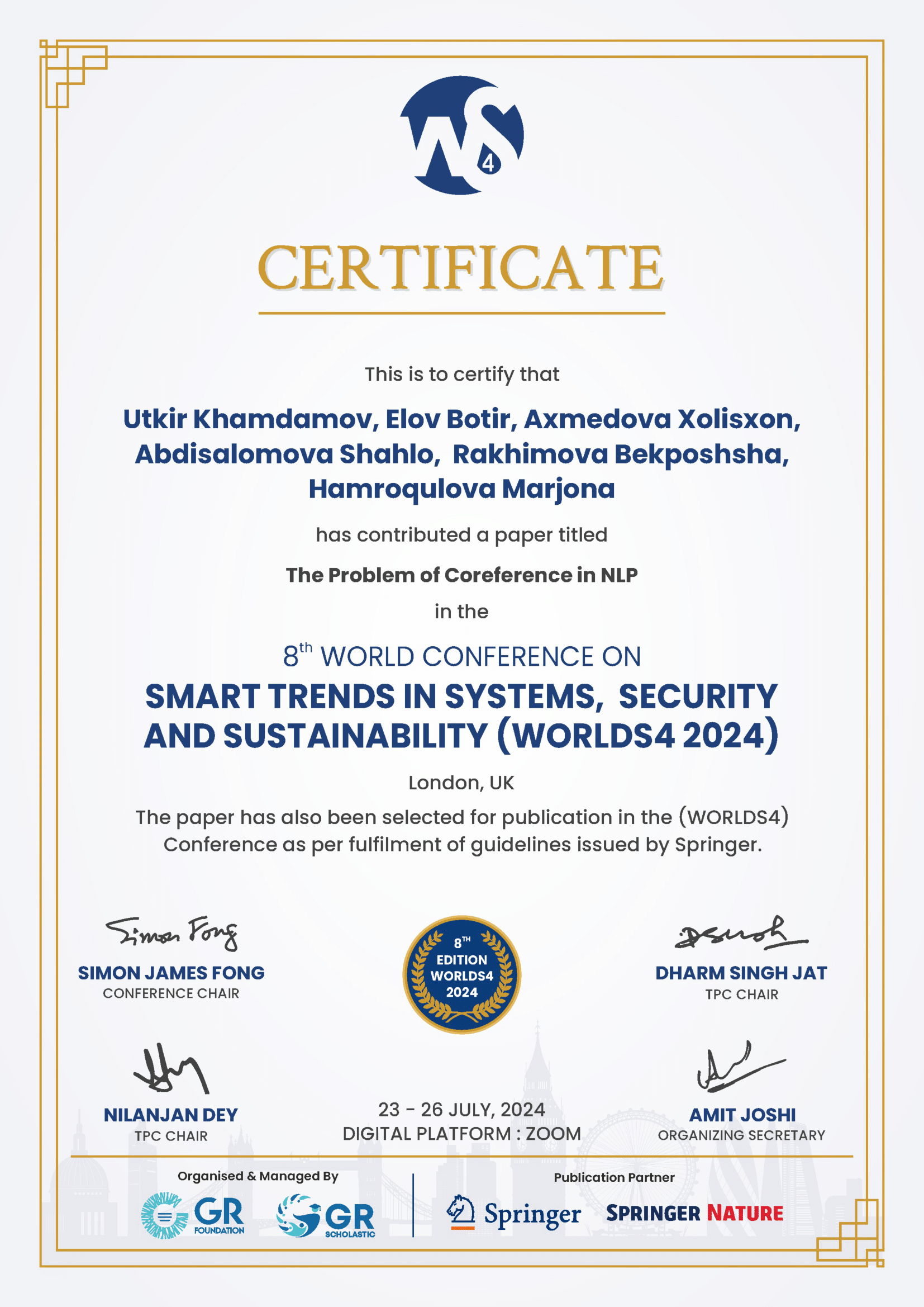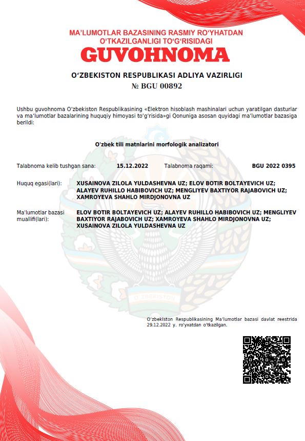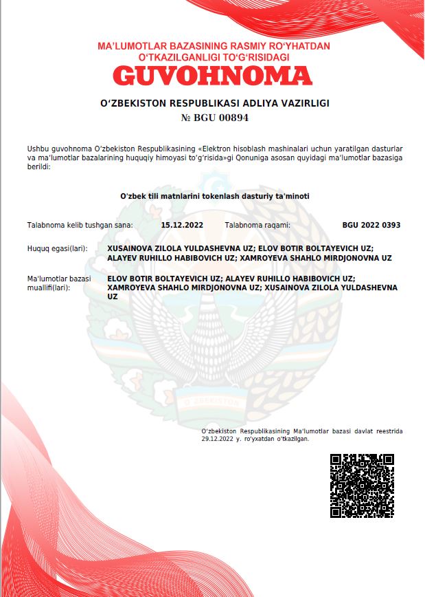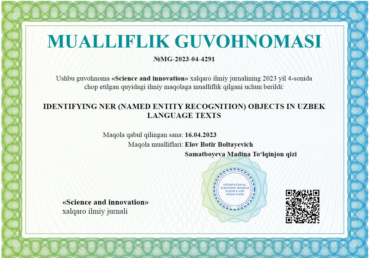 IDENTIFYING NER (NAMED ENTITY RECOGNITION) OBJECTS IN UZBEK LANGUAGE TEXTS