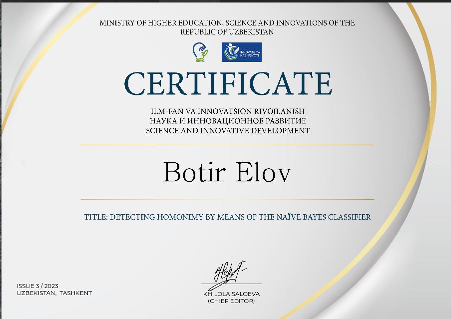 POS TAGGING OF UZBEK TEXTS USING HIDDEN MARKOV MODELS (HMM) AND VITERBI ALGORITHM