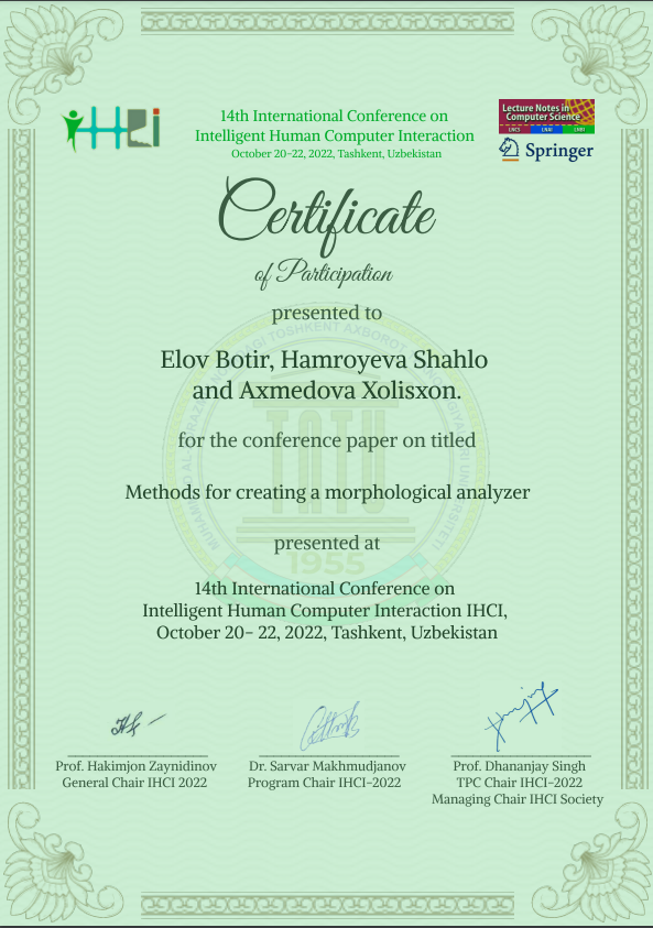 Pos Taging of Uzbek Text Using Hidden Markov Model