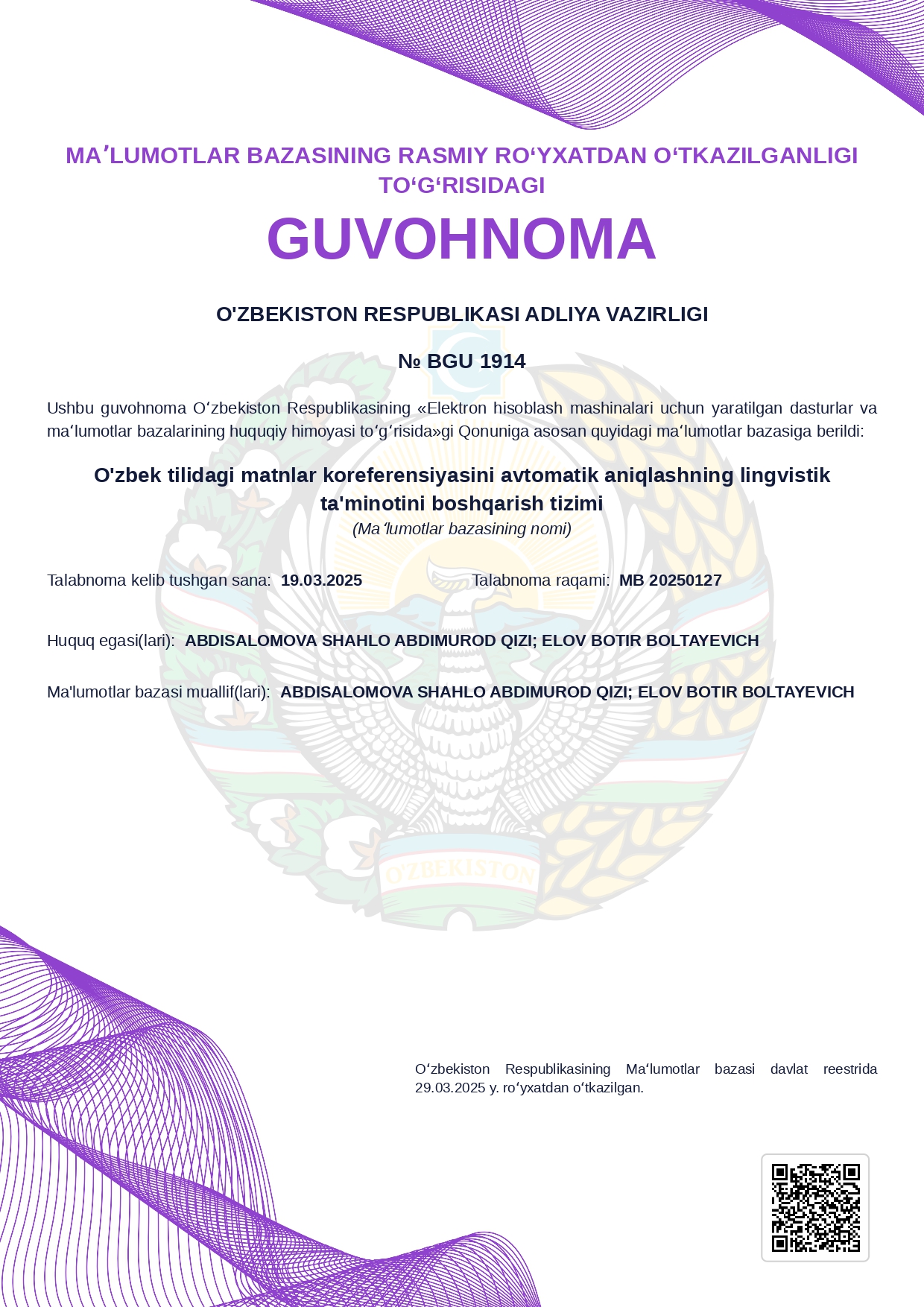 O‘ZBEK TILIDAGI MATNLARDA ATOQLI OTLARNI AVTOMATIK ANIQLASH NE VA NER TUSHUNCHASI