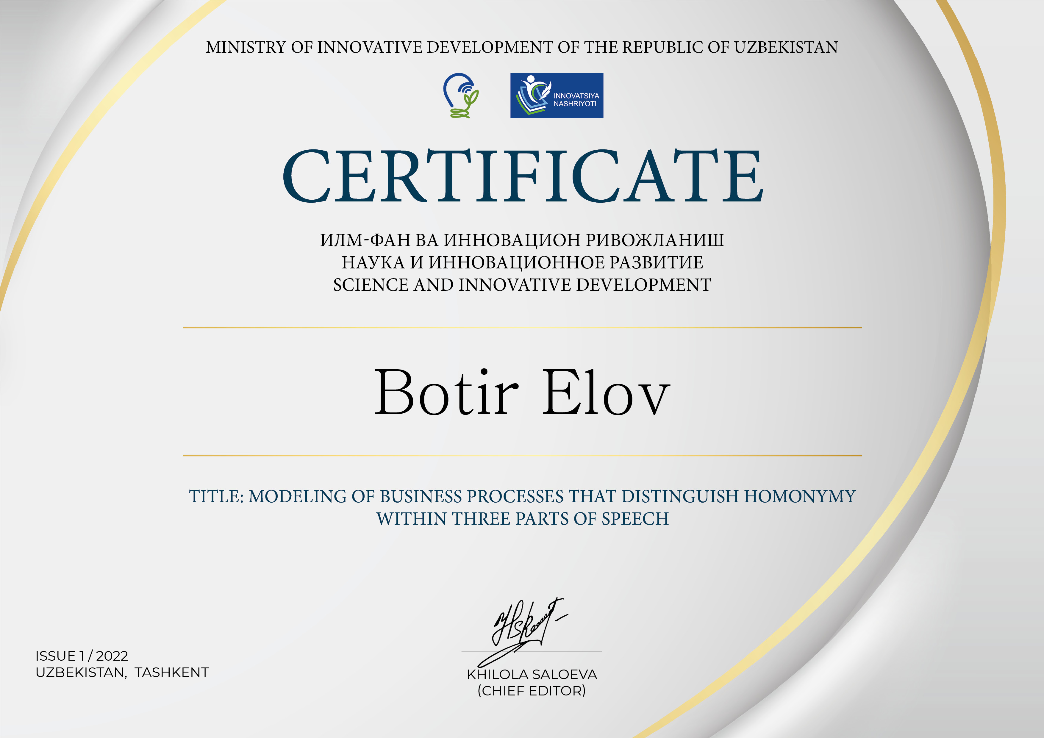 SEMANTIC DIFFERENCES OF POLYFUNCTIONAL WORDS IN UZBEK LANGUAGE BUSINESS PROCESS MODELING.