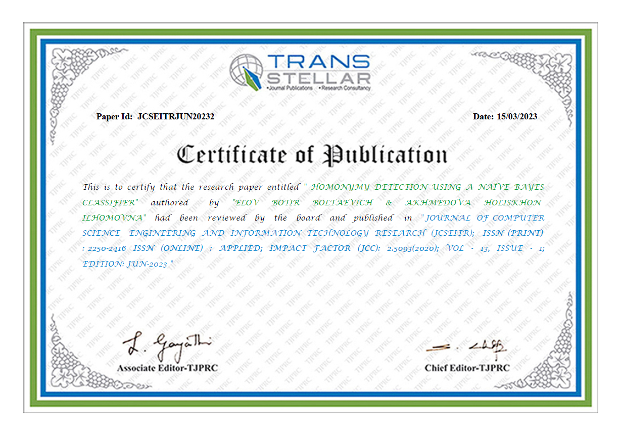DETERMINING HOMONYMY USING STATISTICAL METHODS