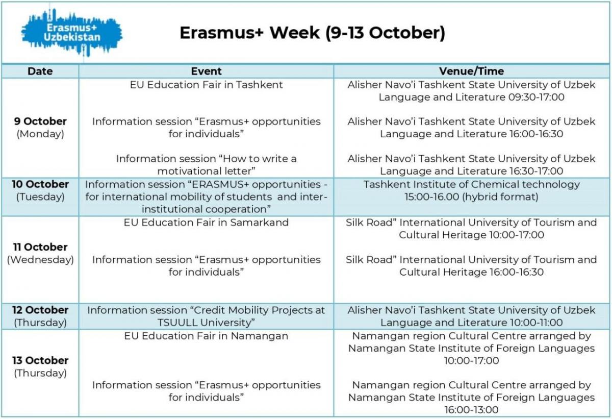 The information session 'Credit Mobility Projects at TSUULL University' will be held within the Erasmus+ Week in Uzbekistan (9-13 October, 2023).