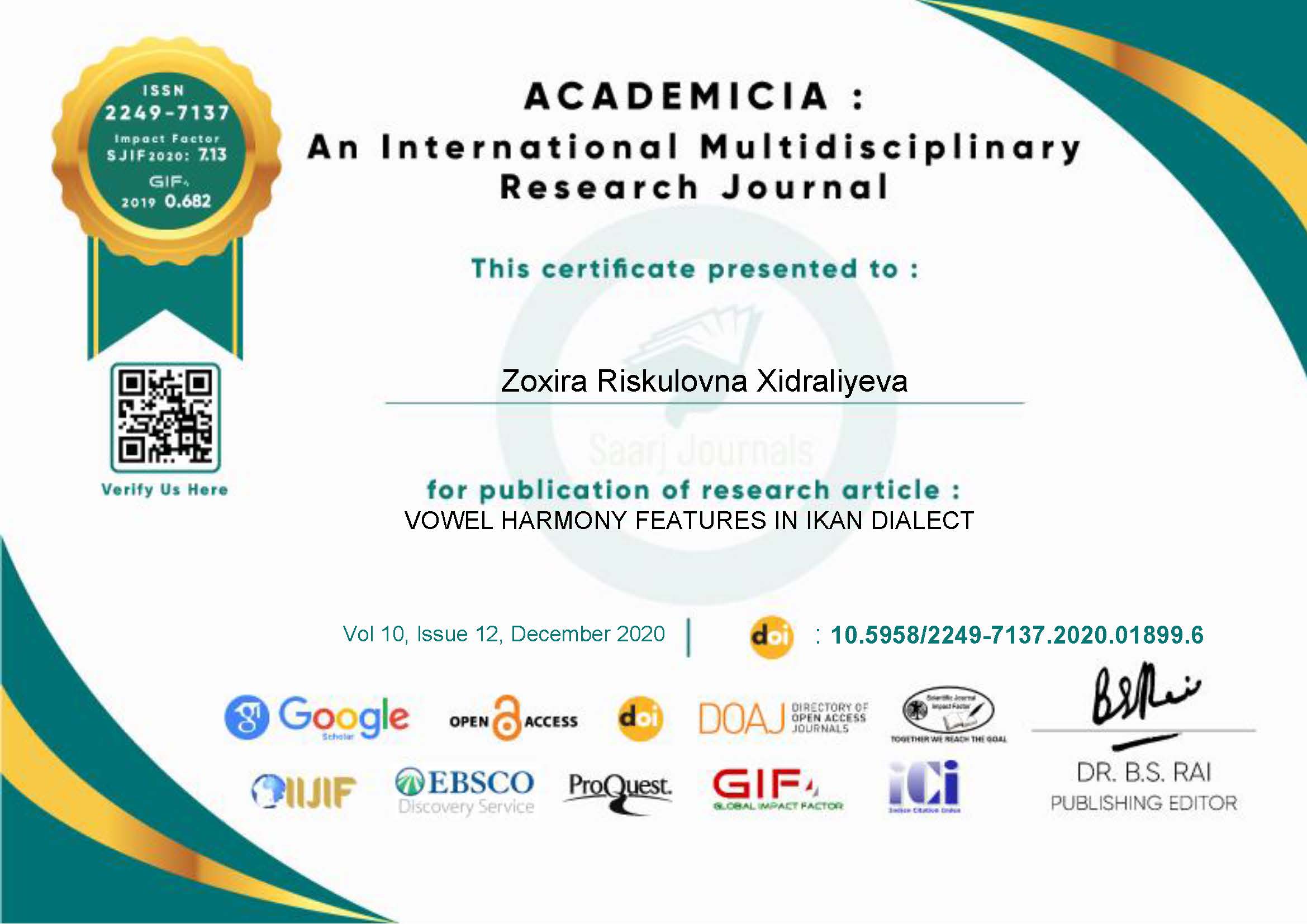 Editor of the journal "Pedagogy" TSPU named after Nizami
