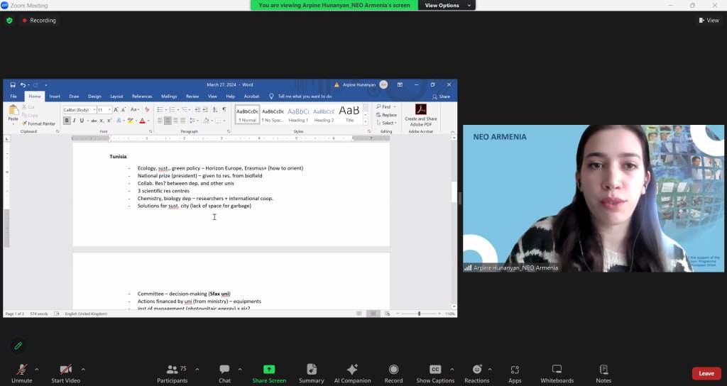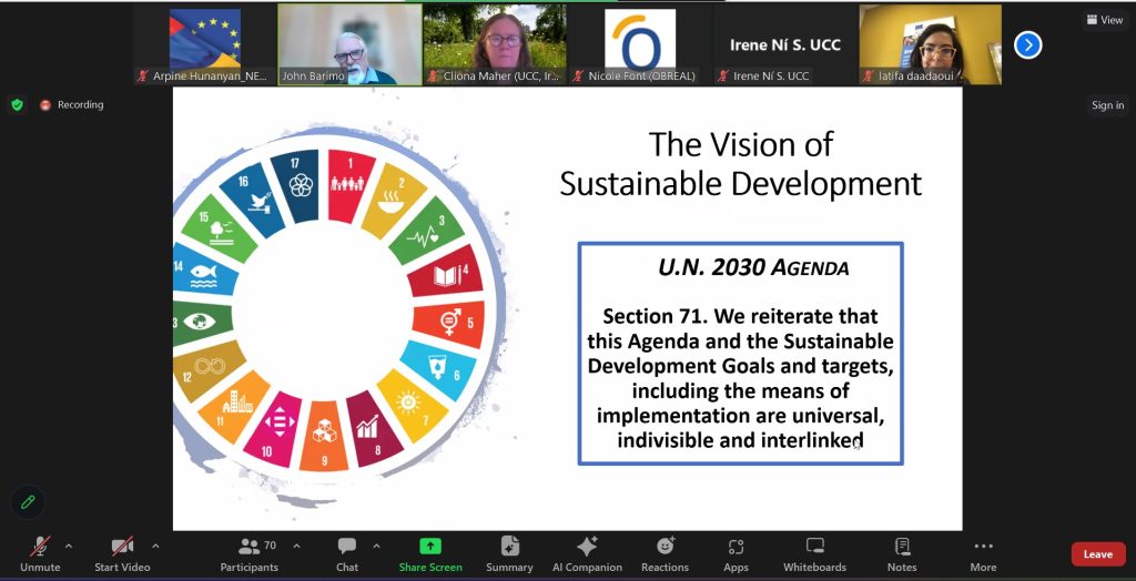 The “Institutional Approaches and Strategies for Greening” virtual study visit, hosted by University College Cork (UCC), Ireland, and SPHERE (Centralized Support to the Network of Higher Education Reform Experts), took place on March 25 and 27, 2024. The event brought together representatives from various countries, including Uzbekistan’s Higher Education Reform Expert Prof. Dr. Nozliya Normurodova and the National Erasmus+ Office in Uzbekistan.