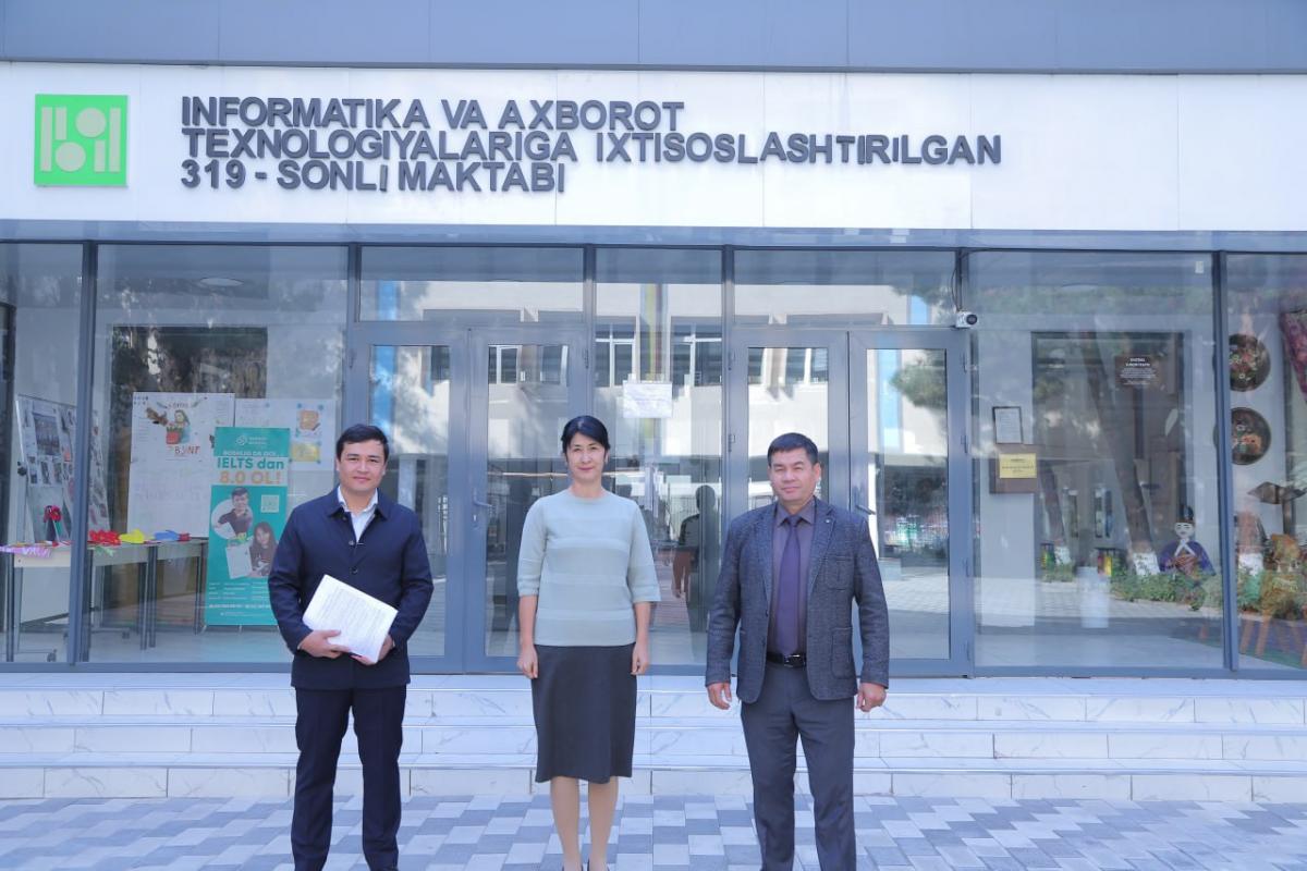 On October 6, 2025, Shokir Khalilov, Head of the Student Internship Department at TSUULL, together with senior specialist Khairulla Rajabov and internship supervisor Saodat Qambarova, visited Secondary School No. 319 under the Department of Preschool and School Education of Yakkasaroy District, Tashkent.