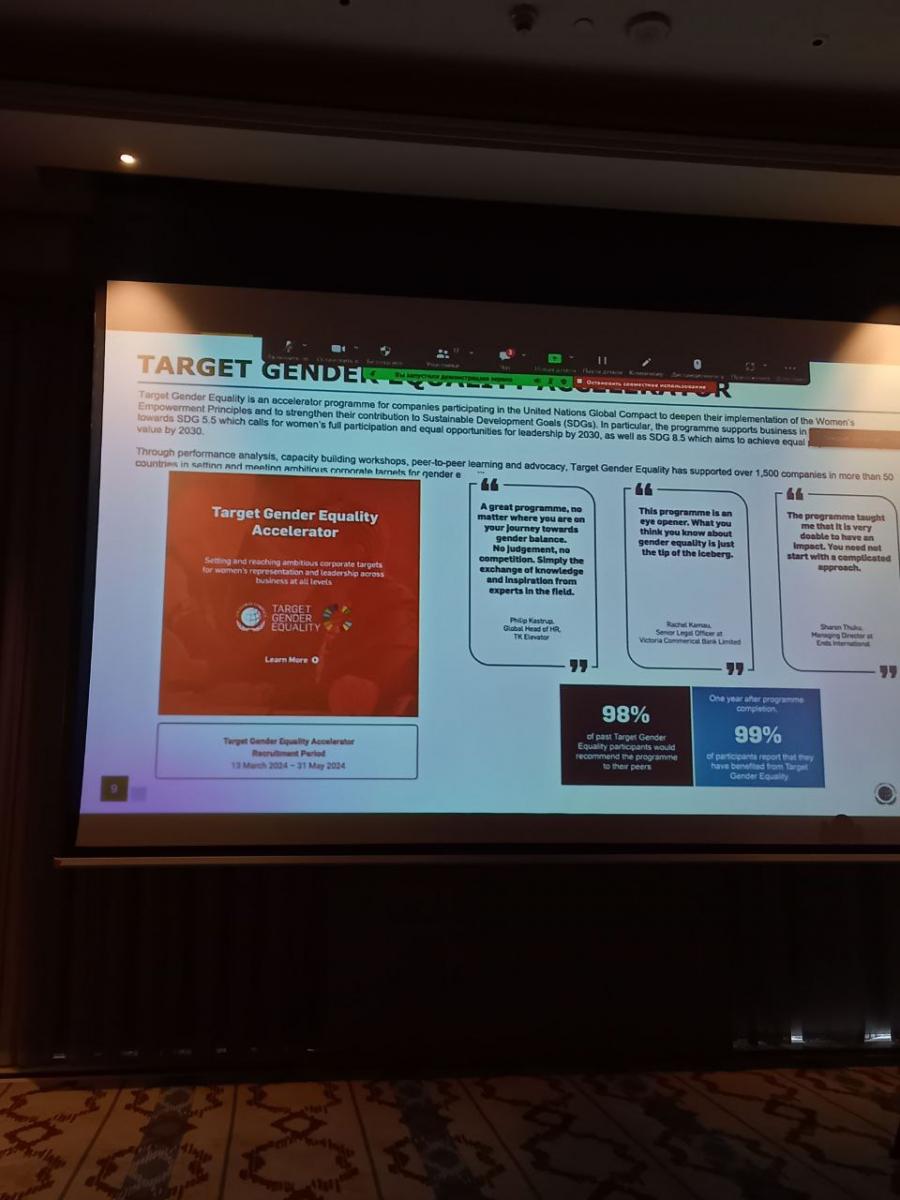The workshop was specifically tailored for professionals across various sectors, including corporate, financial, and government, who share a common interest in gaining a deeper understanding of gender equality and women's empowerment issues in business. This event provided participants with a unique opportunity to explore both the fundamental aspects and practical methodologies of assessing and managing gender equality concerns. In addition, the organisers delved into specific standards, tools, requirements and real-world case studies that offer valuable insights into the field.