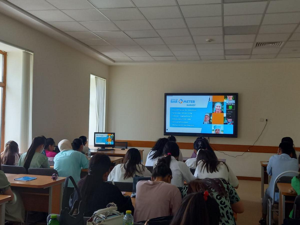 On 12 May 2023, Tlegen Kuandykov, a Communications Officer at Central Asia Barometer (CAB), delivered a public-talk to TSUULL Students on the profession of Communications Officer, their primary duties, and how you can become one. The guest lecture took place via Zoom at TSUULL University Room 312 on Friday. The lecture was held in English and was also attended by 35 students from various faculties. The topic aroused great interest, thus many questions ensued.