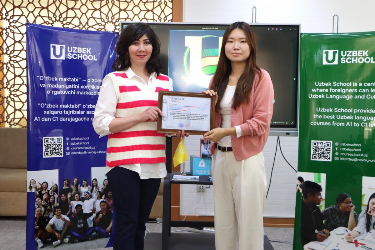 At the conclusion of the event, certificates were awarded to the Korean graduates, along with letters of appreciation for their genuine interest in the Uzbek language and culture.