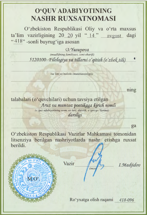 The role of Babur's "Treatise obaruze" in the development of Aruz studies in the Timurid period