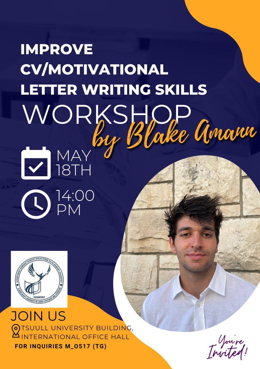 23 Oct 2025 11.05.2023 Workshop (offline) ‘How to Improve a CV and Motivation Letter Writing Skills’ by Blake Amann, 18 May More