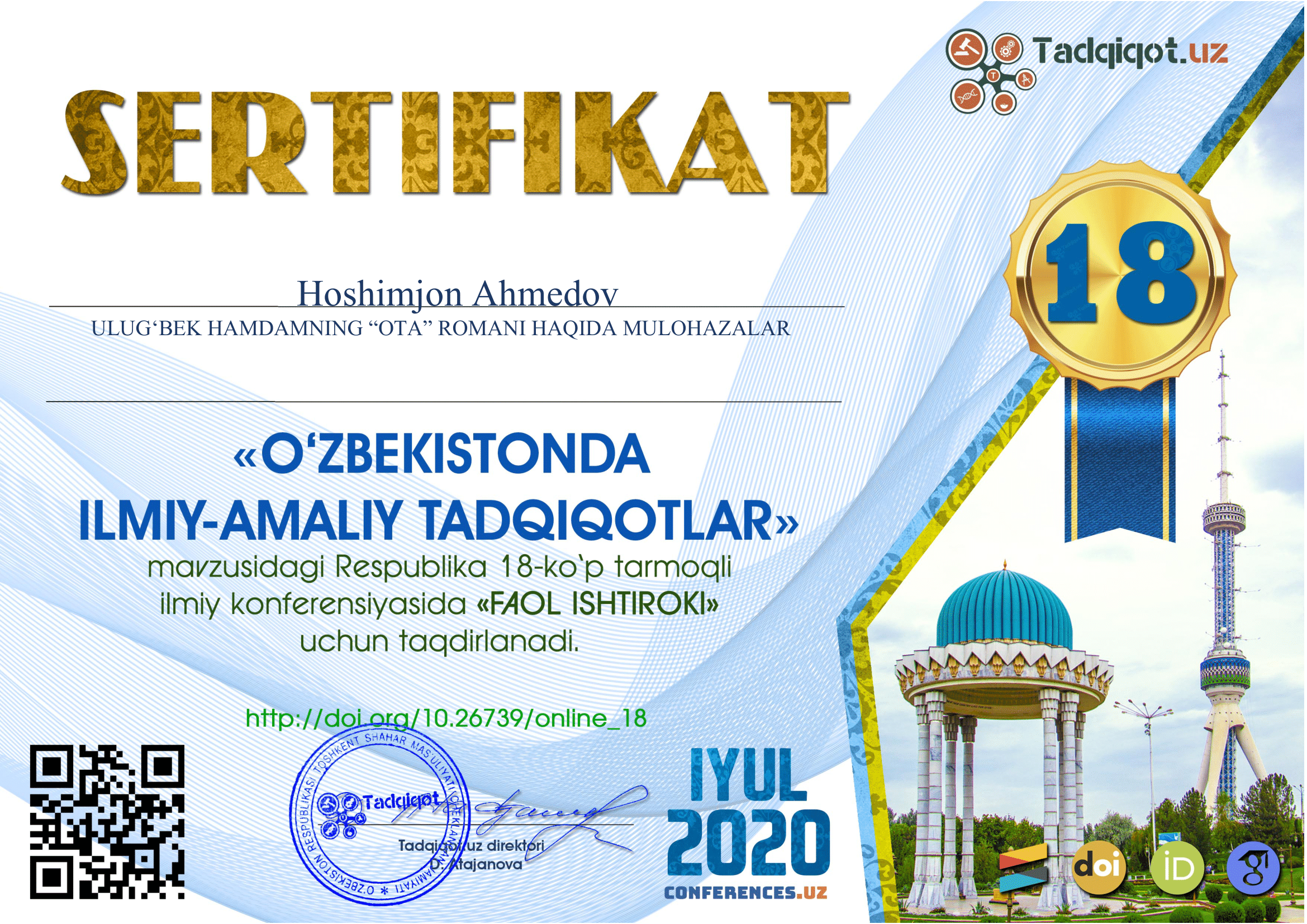 Ahmedov Hoshimjon Hakimovich