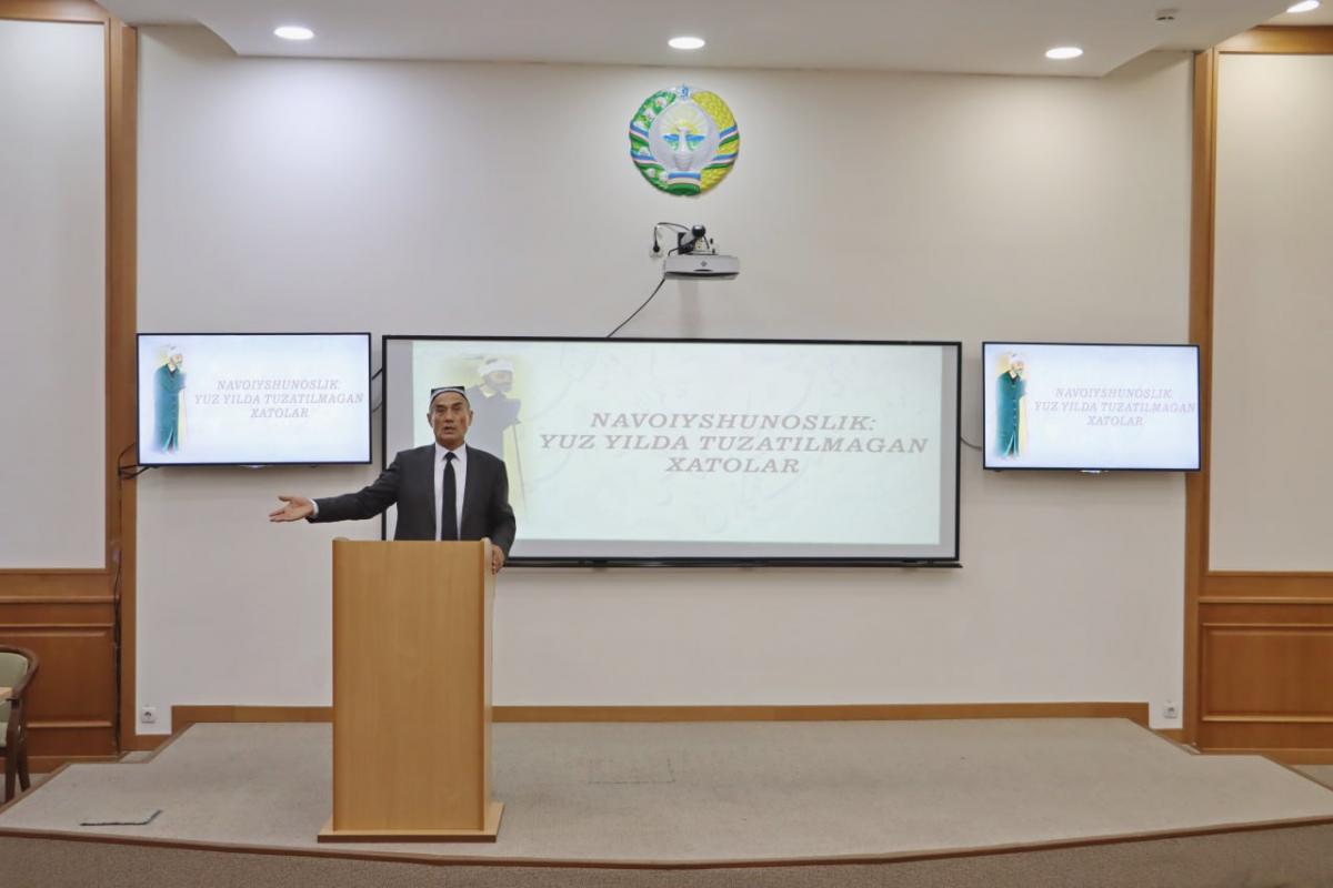 Alisher Navoiy nomidagi Toshkent davlat o‘zbek tili va adabiyoti universiteti rektori, filologiya fanlari doktori, professor Shuhrat Sirojiddinov universitet talabalari va tadqiqotchilariga "Navoiyshunoslik: yuz yilda tuzatilmagan xatolar" mavzusida ma'ruza o‘qidi. Ma'ruzada dohiy mutafakkirning tug‘ilishidan to vafotigacha bo‘lgan hayotining barcha fakt va voqealari qo‘lyozma, arxiv hujjatlari, boshqa manbalar asosida tahlil qilindi. Tarixchilar yozganidek, Alisher Navoiy o‘ta ziddiyatli, aralash va yangi umumturkiy uyg‘onish davriga intiluvchi muhitda yashagan. Hukmdor o‘g‘illari – teymuriylar taxt sari bor mahorat, qobiliyat va sa’y-harakatlarini qilich bilan ko‘rsatgan bo‘lsa, Alisher Navoiy o‘z tafakkuri, iste’dodi va ilmi bilan tabiiy umumturkiy uyg‘onish davriga yo‘l ochdi. Shuhrat Sirojiddinov bugungi ma'ruzasida matnshunos va manbashunos olim sifatida Navoiy hayot yo‘li, ijodi haqidagi muhim ma'lumotlar, og‘riqli masalalar, yosh tadqiqotchilar oldidagi vazifalar haqida so‘z yuritdi.