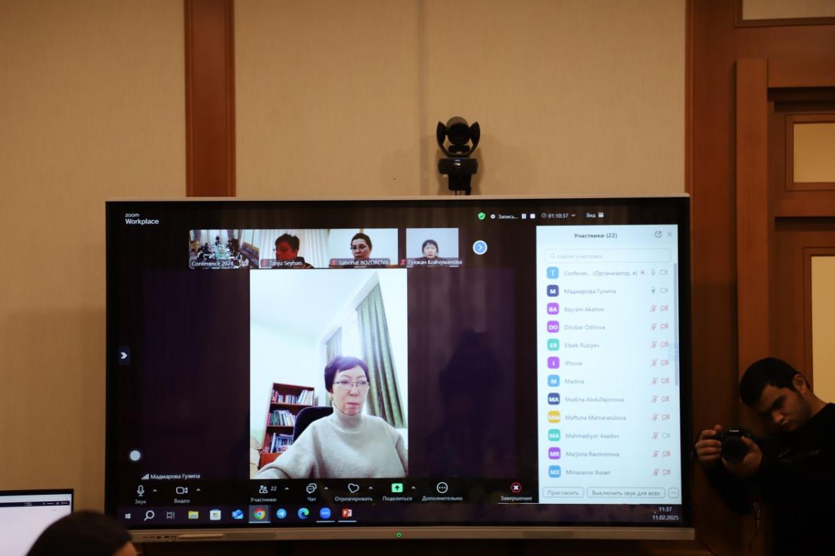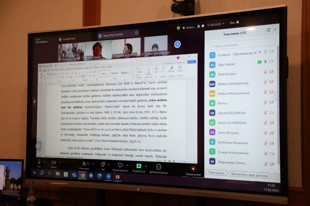 Shuningdek, Farida Aliyeva Zahiriddin Muhammad Bobur ijodining qirg‘iz tadqiqotchilari tomonidan o‘rganilishi bo‘yicha olib borilgan izlanishlar natijalarini taqdim etdi. Dovletmurat Yazkuliyev esa Alisher Navoiy va turkman-o‘zbek do‘stligi masalalari yuzasidan o‘z fikrlarini bildirdi. Seminar yakunida Bermet Zakirova va Nuriyla Damilova Alisher Navoiy asarlarida til va xarakter yaratish san’ati orqali talabalarning madaniy dunyoqarashini kengaytirish masalalariga alohida e’tibor qaratdilar.