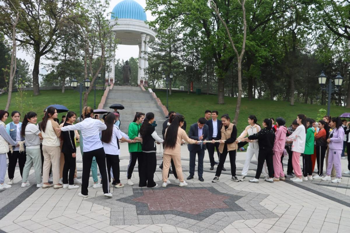 Talabalar o'rtasidagi arqon tortish, "Oq terakmi, ko'k terak", "O'rtaga tush" singari o'yinlar ko'tarinki ruhda tashkil etildi.