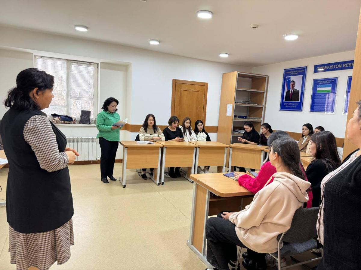 Bugungi sana munosabati bilan O‘zga tilli guruhlarda o‘zbek tili ta’limi kafedrasi professor-o‘qituvchilari: Sh.Isayeva, N.Musulmonova, O.Abdulhakimova, Y.Shirinova, X.Kadirova, G.Iskandarova, D.Elovalar tomonidan 2-TTJda “Bahor keldi seni so‘roqlab...” nomli davra suhbati tashkil qilindi. Tadbirda shoira Zulfiyaxonimning hayoti va ijodi to‘g‘risida ma’lumot berildi. Talabalar shoira ijodidan namunalar aytishdi. Zulfiyaxonim va Hamid Olimjon to‘g‘risida ishlangan film haqidagi ko‘rsatuv tomosha qilindi va fikr-mushohada yuritildi. Zulfiyaxonim ijodidan rus tiliga tarjima qilingan she’rlardan parchalar o‘qildi. Tadbir talabalarda va tadbir ishtirokchilarida katta taassurot qoldirdi.