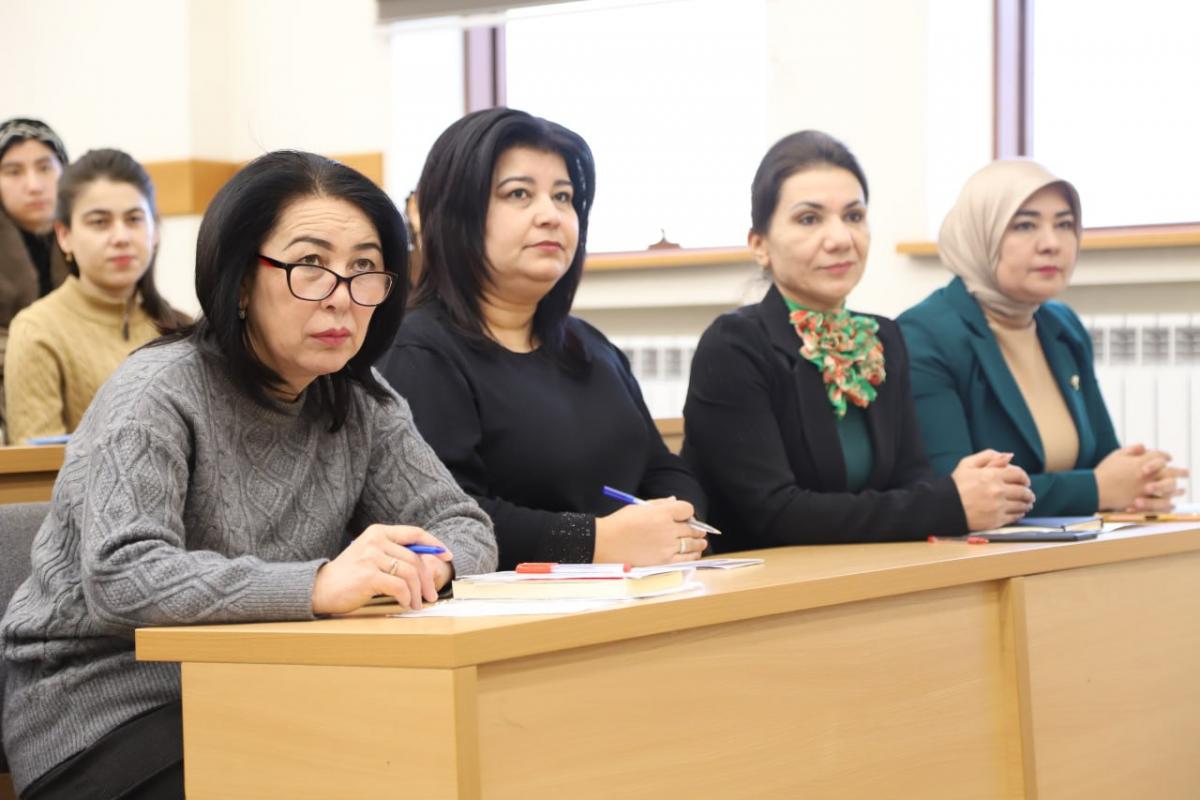 O‘zbek tili va adabiyoti ta’limi kafedrasi dotsenti p.f.b.f.d. (PhD), dots.O.Turaqulova va O‘zbek tili va adabiyoti ta’limi kafedrasi katta o‘qit. p.f.b.f.d. (PhD) S.Kuldasheva Pedagogik amaliyot yakunida topshirish zarur bo‘lgan hujjatlar xususida maxsus taqdimot qilib, hujjatlardan namunalar ko‘rsatishdi.