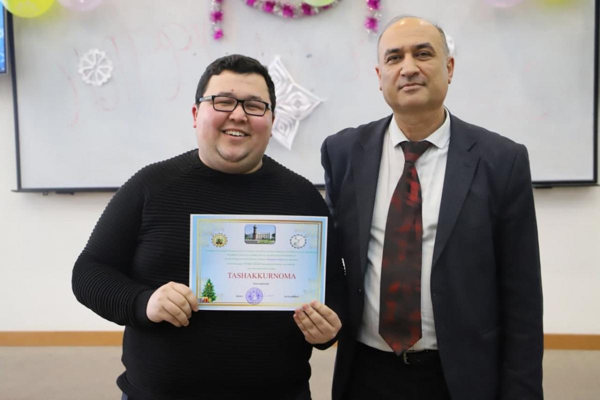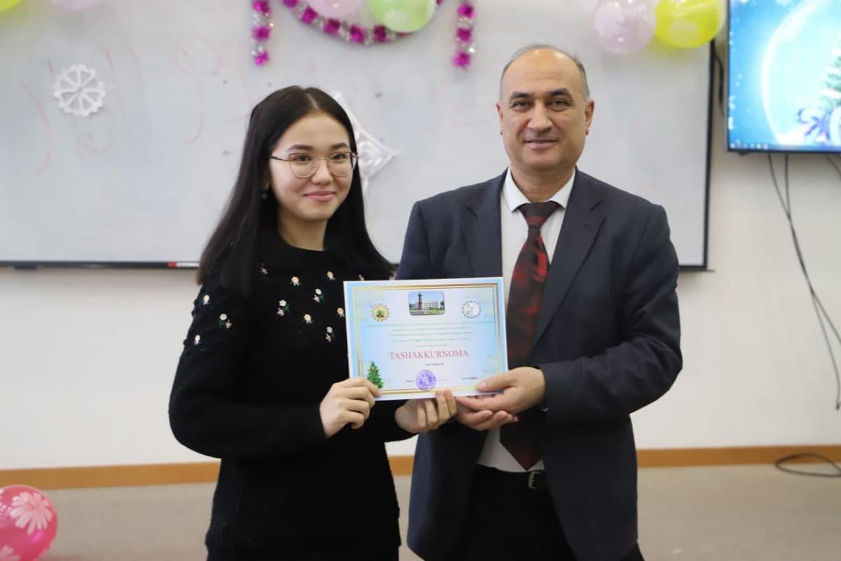 Shuningdek tadbirda yil davomida oʻzini har jihatdan namoyon etgan, universitet miqyosidagi ijtimoiy-maʼnaviy ishlarda oʻzini koʻrsatgan faol talabalarga tashakkurnomalar topshirildi.