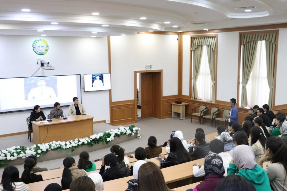 sportchiga asosan u bosib oʻtgan yoʻl, mashgʻulotlar va muvaffaqiyatga erishish sirlariga doir savollar berildi. Mehmon o‘zining hayoti va faoliyati, musobaqalar oldidan boshidan o‘tkazgan mashaqqatlar va erishgan yutuqlari to‘g‘risida birma-bir soʻzlab berdi. Talabalar chempionning soʻzlaridan juda ruhlandilar.