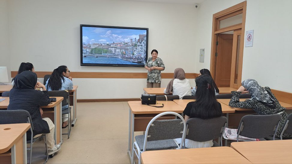 Mahorat darsi davomida talabalar Shvetsariya va Angliya davlatlarining yirik iqtisodiy va moliyaviy markazlari, sanoatlashgan hududlari, shuningdek, ushbu mamlakatlardagi ta’lim tizimi haqida batafsil va qiziqarli ma’lumotlarga ega bo‘ldilar. Mazkur dars rus tilidagi og‘zaki nutqni rivojlantirishga xizmat qilgan bo‘lib, talabalar o‘zlari borgan va ko‘rgan davlatlar haqida rus tilida bir-birlariga hikoya qilish orqali mashq bajarishdi.