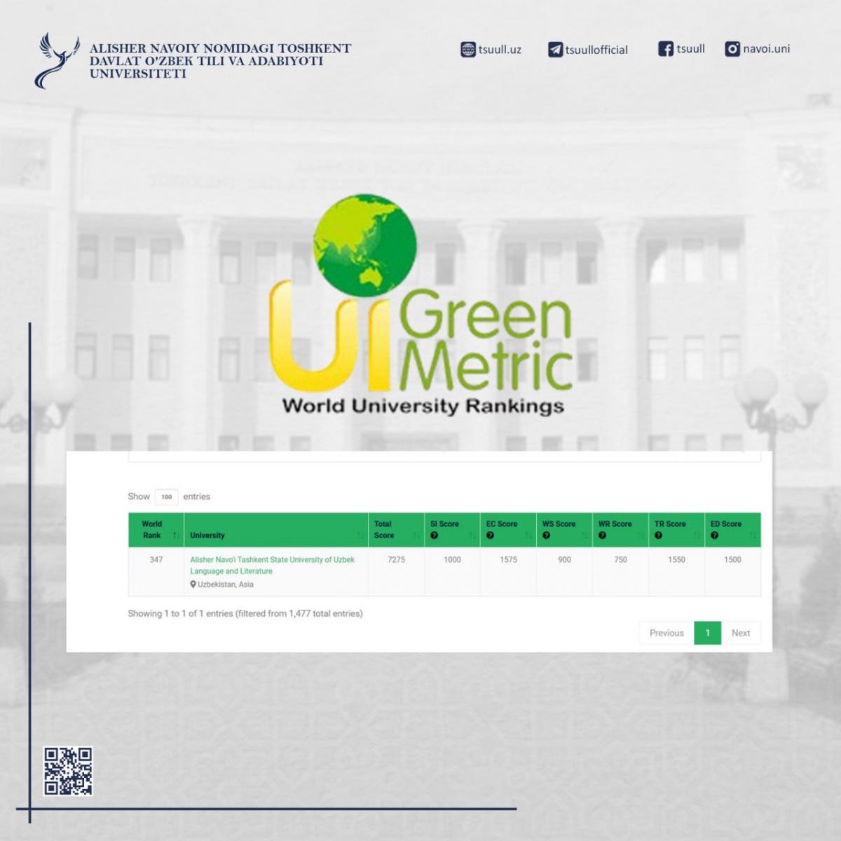 Eslatib o‘tamiz, mazkur natijalar bilan universitetimiz mahalliy oliy ta’lim muassasalari orasida 3-o‘rinni egalladi. Bu, shubhasiz, jamoamizning birgalikdagi mehnati, qat’iyati va ekologik barqaror taraqqiyot tamoyillariga sodiqligining yaqqol ifodasidir.