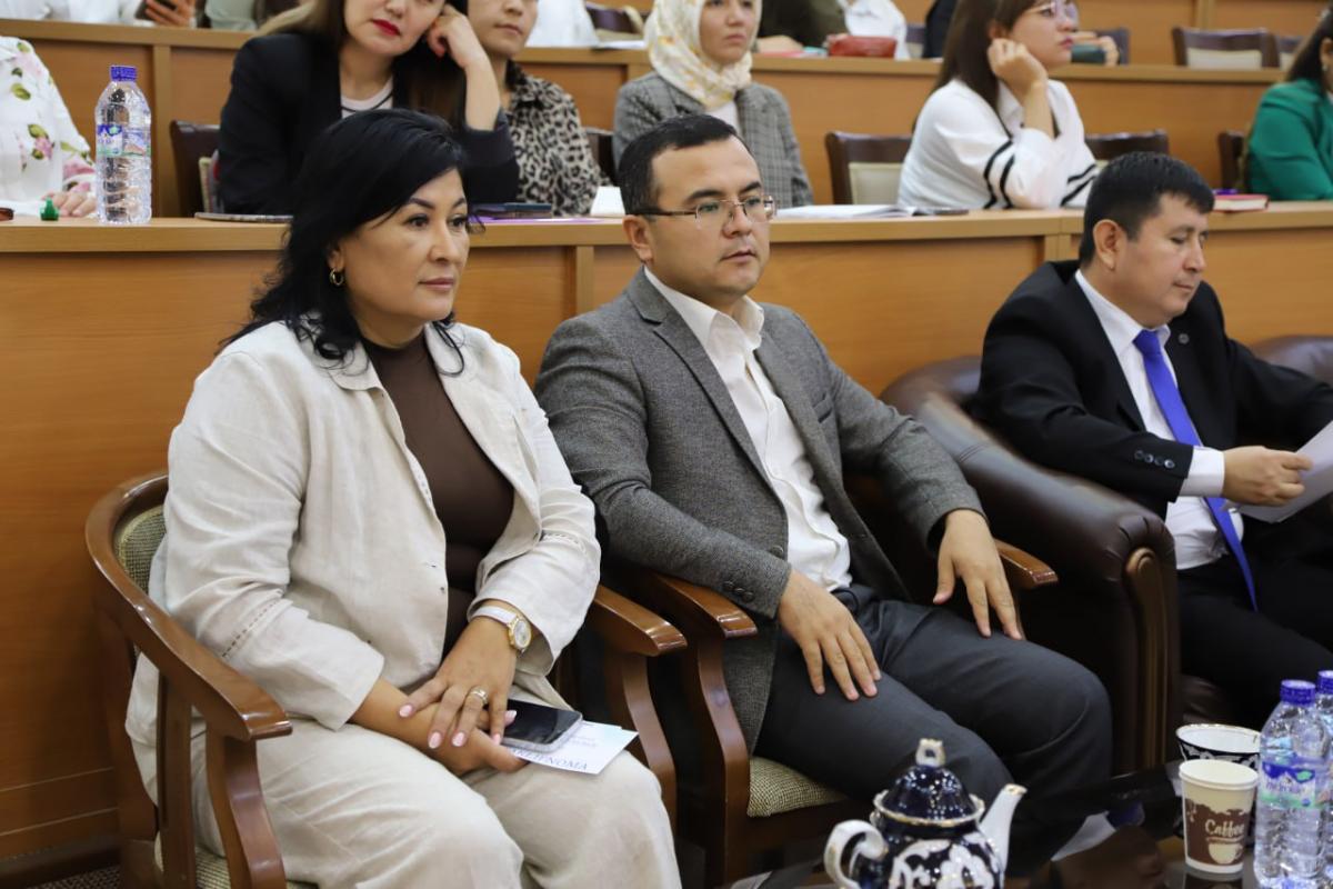 Konferans ishtirokchilariga universitet rektori akademik Sirojiddinov Shuhrat Samariddinovichning tabrigini ilmiy ishlar va innovatsiyalar bo‘yicha prorektor Jamoldinova Odina Rasulovna o‘qib eshittirdi.