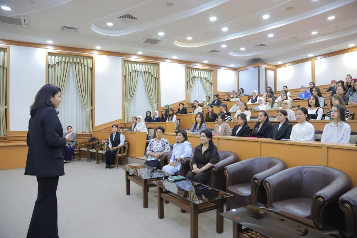 Tashrif doirasida “Rahbar ayol va yoshlar” mavzusida samimiy uchrashuv bo‘lib o‘tdi. Uchrashuv davomida talabalar o‘zlarini qiziqtirgan savollarni berishdi, fikr va takliflarini bildirishdi. Muloqot ochiq, do‘stona va ilhomlantiruvchi ruhda o‘tdi.