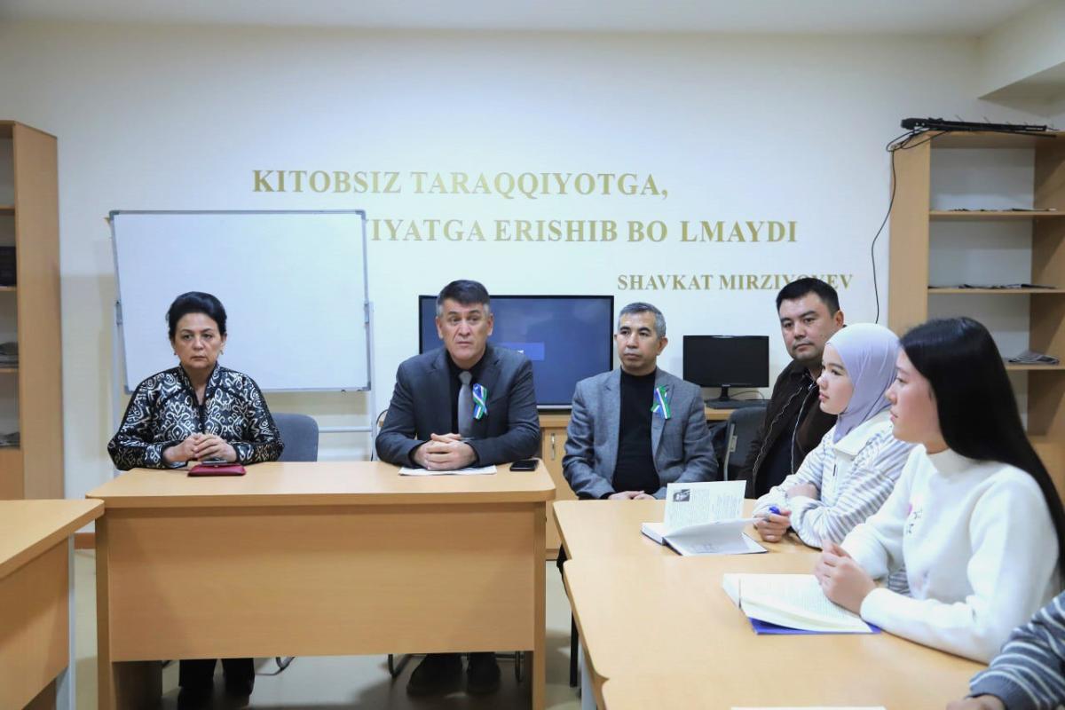 Tadbir davomida talabalar ham faol ishtirok etib, o‘zlarini qiziqtirgan savollarni berishdi, turli mazmundagi fikr va mulohazalarini bildirshdi. Bu esa suhbatni yanada qiziqarli va samarali ruhda o‘tishiga xizmat qildi. Ustozlar tomonidan talabalarning huquqiy savodxonligini oshirish, konstitutsiyaviy qadriyatlarni chuqur anglash, fuqarolik pozitsiyasini shakllantirish bo‘yicha tavsiya va ko‘rsatmalar berildi.
