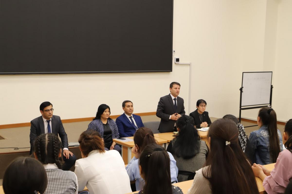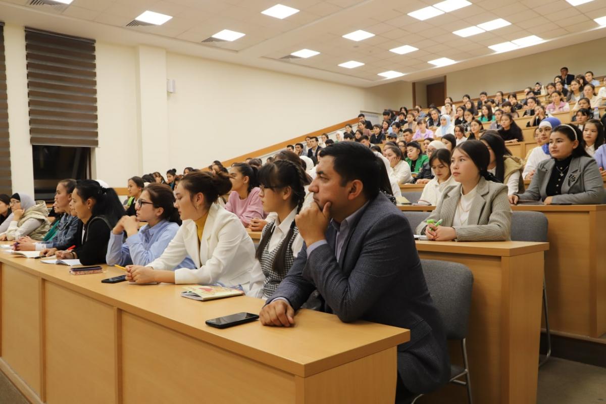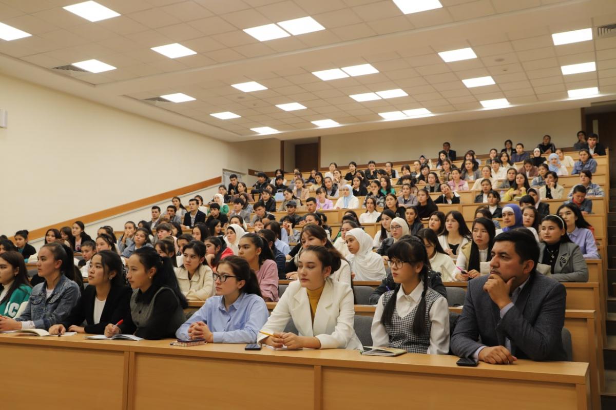Tadbirni universitetning o‘quv ishlari bo‘yicha prorektori S. Normamatov ochib berdi. Kredit-modul tizimi, HEMIS platformasi haqida talabalarga batafsil ma’lumot berdi. Talabalarning joriy, oraliq va yakuniy nazoratlari tartibi, o‘quv jarayoni, davomati haqida ham fikrlar bildirdi. Shuningdek, ichki tartib qoidalar, ta’lim bo‘yicha universitet nizomi haqida ham axborot yetkazildi.