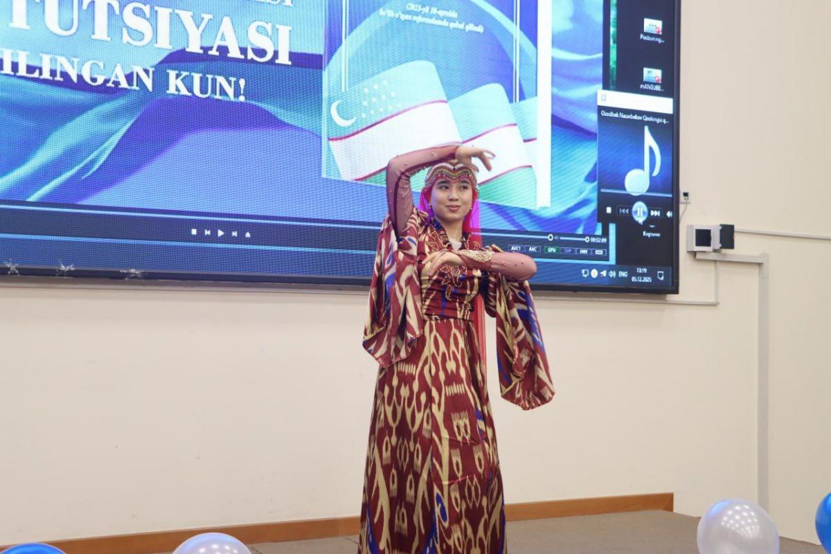 Tadbir davomida bir necha talabalar Konstitutsiya va davlat ramzlari haqida she’rlar va badiiy o‘qishlar bilan chiqish qilishdi. O‘zbek tilining davlat tili sifatidagi maqomi, davlat suvereniteti va qonun ustuvorligi haqida ijodiy ifodalangan she’rlar tinglovchilarni muxlislik bilan qarshi oldi. Bundan tashqari, talabalar tomonidan tayyorlangan videorolikda Konstitutsiyaning yoshlar hayotidagi ahamiyati, ularni qo‘llab-quvvatlashga qaratilgan moddalar zamonaviy vizual uslubda yoritildi.