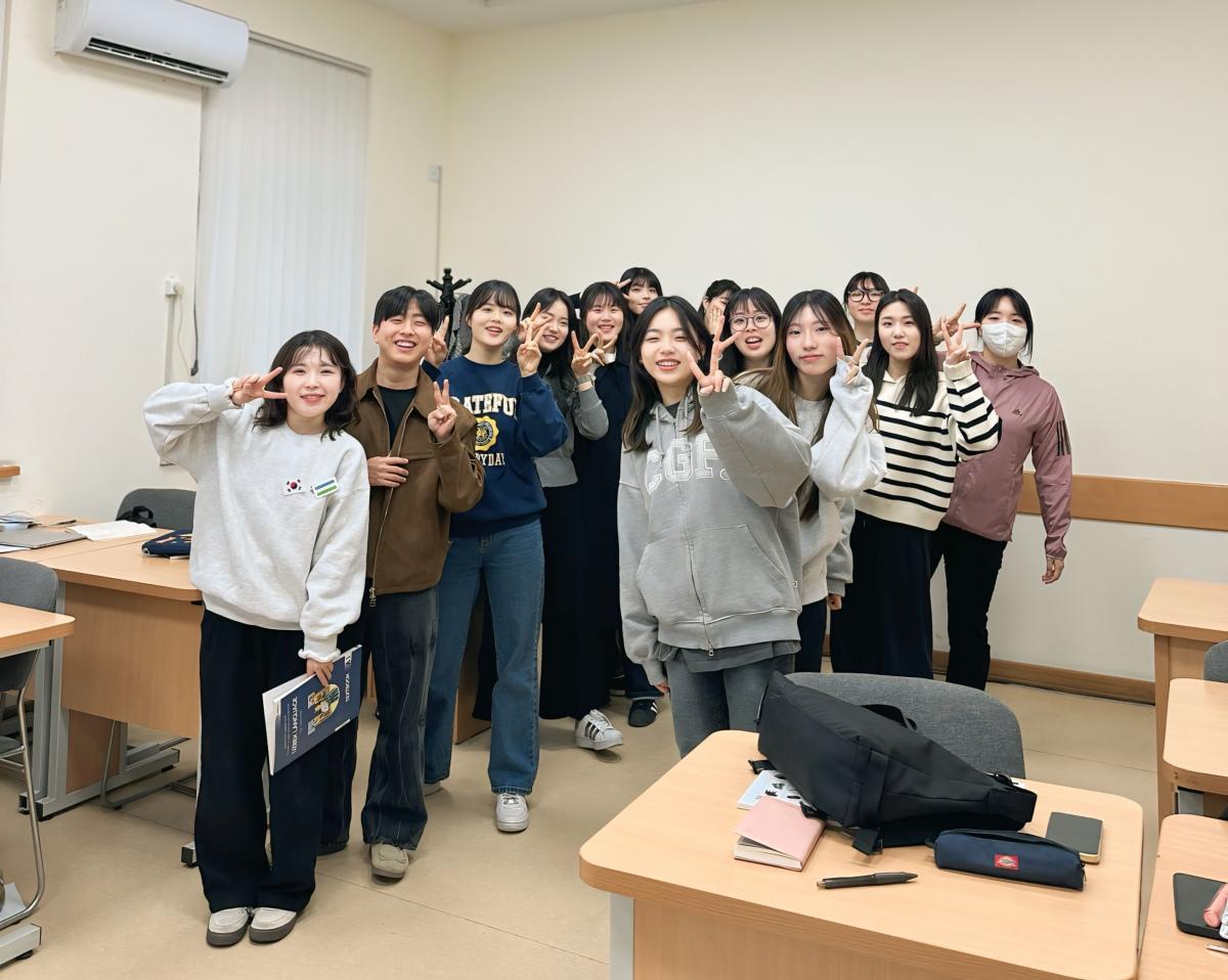Bugun, 2025-yil 28-fevral kuni ToshDO‘TAUda koreyalik talabalarni kutib olish marosimi bo‘lib o‘tdi. Tadbirni universitet ilmiy ishlar va innovatsiyalar bo‘yicha prorektori Nozliya Normurodova ochib berdi. Talabalar ilk bor yuzma-yuz o‘zbek tili darsida qatnashishdi. Ushbu darsni “O‘zbek maktabi”ning katta o‘qituvchisi Durdona Ermatova olib bormoqda. Darslar nafaqat grammatik bilim berishga, balki real hayotiy vaziyatlarda o‘zbek tilidan foydalanishga qaratilgan.