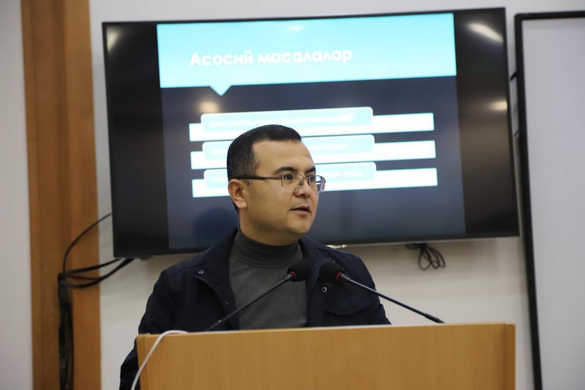 Shuningdek, bugungi seminar yig‘ilishida O‘zbek adabiyoti tarixi kafedrasi dotsenti, filologiya fanlari doktori Ilyos Ismoilov “Dissertatsiya va uning avtoreferatini rasmiylashtirish qoidalari” hamda “Dissertatsiyalar ilmiy natijalarini amaliyotga joriy etish masalalari” mavzusidagi taqdimot ma’ruzasi bilan ishtirok etdi. Unda dissertatsiya va avtoreferatni rasmiylashtirishning huquqiy asoslari, dissertatsiyani rasmiylashtirish qoidalari, dissertatsiyaga qo‘yiladigan talablar xususida batafsil ma’lumotlar berildi.