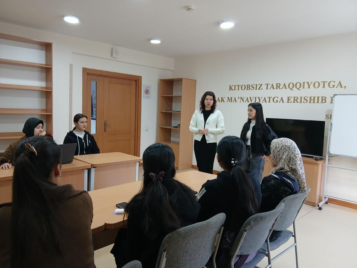 Tarjima nazariyasi va amaliyoti kafedrasi o‘qituvchisi D.Zaripova tomonidan 1-talabalar turar joyida 101 va 103-guruh talabalari ishtirokida “Mardlar qo'riqlaydi Vatanni” mavzusida ma’rifiy tadbir tashkil etildi.