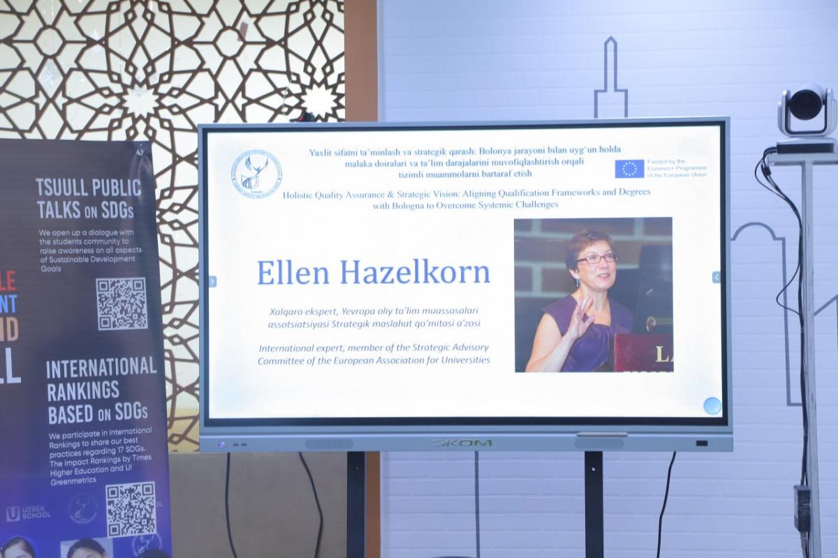 Seminarning asosiy ma’ruzachisi bo‘lgan xalqaro ekspert Ellen Hazelkorn o‘z chiqishida sifat kafolatini strategik boshqaruvning ajralmas qismi sifatida ko‘rib chiqish zarurligiga to‘xtaldi. Uning ta’kidlashicha, malaka talablari va ta’lim darajalari aniq belgilangan taqdirdagina diplomlarni tan olish, akademik mobillik va xalqaro hamkorlikni rivojlantirish imkoniyati kengayadi.