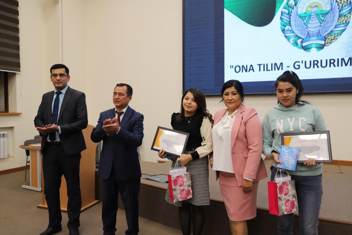Oʻzbek tiliga davlat tili maqomi berilganining 33 yilligi munosabati bilan Alisher Navoiy nomidagi Toshkent davlat o‘zbek tili va adabiyoti universiteti Ona tili va adabiyot ta’limi fakulteti kechki ta’lim shaklida tahsil olayotgan talabalar uchun tashkil etilgan “Ona tilim – g‘ururim, faxrim” nomli ma’naviy-badiiy kecha oʻtkazildi. Tadbirga O‘zbekiston xalq shoiri Iqbol Mirzo va san’at ahllari tashrif buyurdilar. Tadbirni Ona tili va adabiyot ta’limi kafedrasi mudiri Gulnoza Jo‘rayeva ochib berdi. Shuningdek fakultetning o‘quv ishlari bo‘yicha dekan o‘rin bosari Akbar Ro‘ziyev so‘zga chiqdi. Tadbir doirasida tashkil etilgan “Til – millat ko‘zgusi” insholar tanlovi g‘oliblari munosib taqdirlandi. Ona tilimizni sharaflovchi turli she’rlar, goʻzal raqslar, sahna koʻrinishlari bilan bir qatorda koʻngilochar dasturlar namoyish etildi.