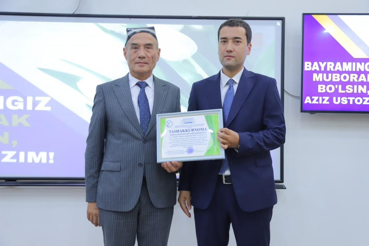 Bayram tadbirida bir guruh faol ustozlar ham taqdirlandi. Jumladan, professor Odinaxon Jamoliddinova va universitet Kasaba uyushma kengashi raisi Ra’no Azizovalarga “Oliy ta’lim a’lochisi” ko‘krak nishonlari tantanali ravishda topshirildi.