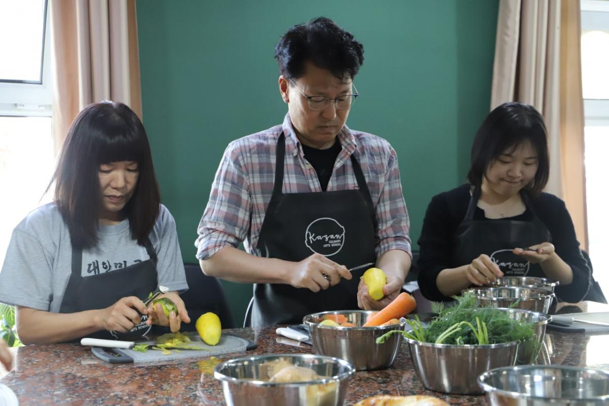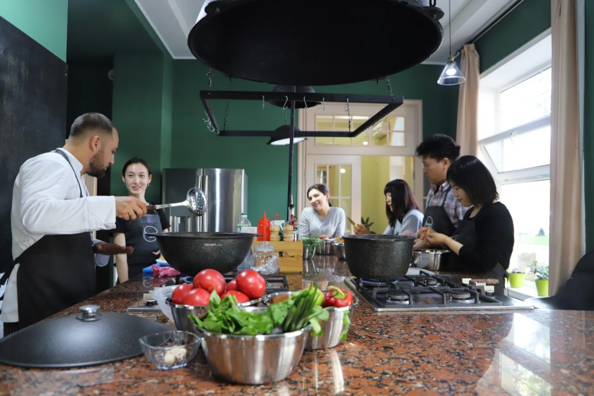 Bugungi mahorat darslarida koreyalik tinglovchilar professional oshpazdan o‘zbek milliy palovi va milliy qaynatma sho‘rva tayyorlash sirlarini o‘rganishdi.