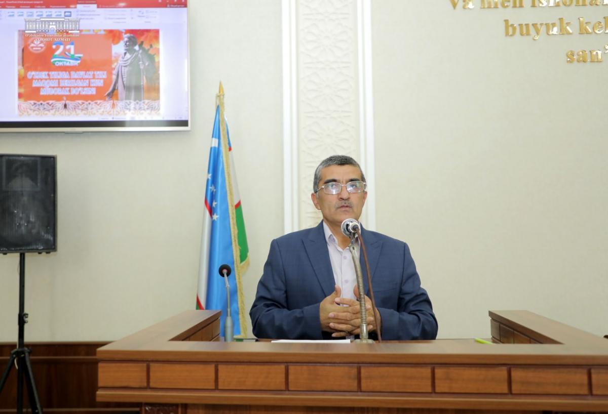 Folklorshunoslik va dialektologiya kafedrasi dotsenti Abdumurod Tilavov O‘zbekiston Respublikasi Prezidenti huzuridagi davlat boshqaruvi akademiyasida bo‘lib o‘tgan davra suhbatida ma'ruzachi sifatida qatnashdi.
