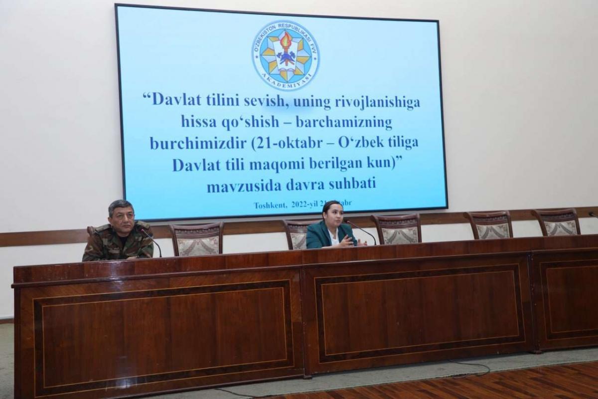 Rohila Abdullayeva Favqulodda vaziyatlar vazirligi Akademiyasi shaxsiy tarkibi ishtirokida, harbiy xizmatchilar o‘rtasida Vatanparvarlik, Ona-Vatanga sadoqat tushunchalarini mustahkamlash hamda 21-oktabr – "O‘zbek tili bayrami kuni"ga bag‘ishlab "Davlat tilini sevish, uning rivojlanishiga hissa qo‘shish – barchamizning burchimizdir" mavzusidagi davra suhbatida ishtirok etdi.