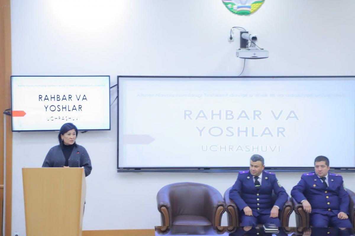 Joriy yilning 22-dekabr kuni Alisher Navoiy nomidagi Toshkent davlat o‘zbek tili va adabiyoti universitetida Fuqaro muhofazasi instituti rahbar va xodimlari ishtirokida “Rahbar va yoshlar” mavzusida muhim uchrashuv bo‘lib o‘tdi. Mazkur tadbir yoshlar bilan ochiq muloqotni yo‘lga qo‘yish, ularning vatanparvarlik ruhini yuksaltirish hamda milliy armiyamizning jamiyat hayotidagi o‘rni haqida tushunchalarni mustahkamlashga qaratildi.