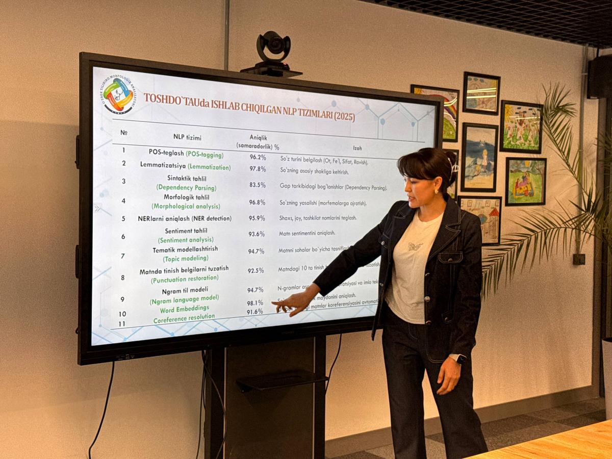 O‘zbek tiliga davlat tili maqomi berilganiga 36 yil to‘lishi munosabati bilan 2025-yil 18-oktyabr kuni Toshkent davlat o‘zbek tili va adabiyoti universiteti Kompyuter lingvistikasi va raqamli texnologiyalar kafedrasi professor-o‘qituvchilari – f.f.d. (DSc) Sh. Hamroyeva, f.f.f.d. (PhD) O. Abdullayeva va f.f.f.d. (PhD) PhD Z. Xusainova tomonidan Raqamli hukumat loyihalarini boshqarish markazida “Raqamli davrda tilimiz istiqboli” mavzusida ma’naviy-ma’rifiy tadbir o‘tkazildi.