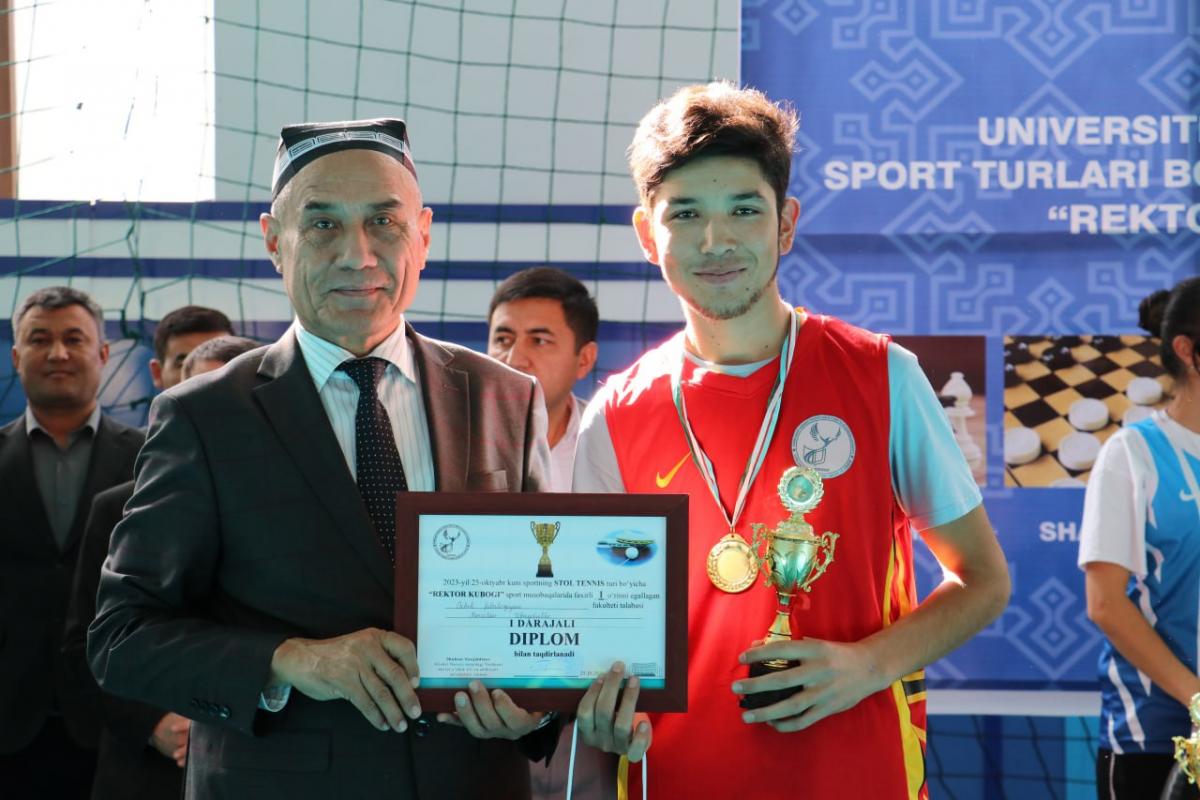 Musobaqalar yakuniga ko'ra milliy kurash bo'yicha rektor kubogi Ona tili va adabiyot ta'limi fakulteti talabasi Jovliyev olimga, mini futbol bo'yicha Ona tili va adabiyot ta'limi fakulteti (kechki ta'lim shakli) jamoasiga, voleybol bo'yicha yigitlar o'rtasida Ona tili va adabiyot ta'limi fakultetiga, qizlar o'rtasida tarjima nazariyasi va amaliyoti fakultetiga nasib etdi.