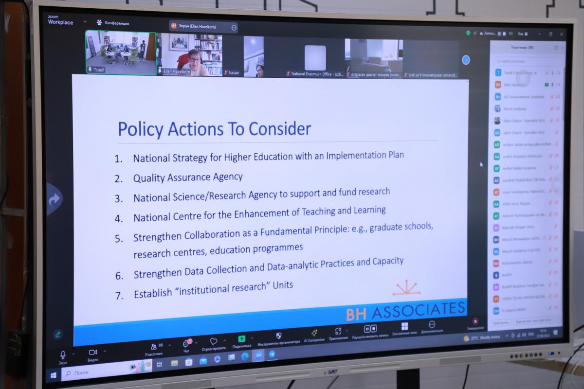 2024-yilning 27-sentabr kuni Alisher Navoiy nomidagi Toshkent davlat oʻzbek tili va adabiyoti universitetida “OTMlar uchun Strategiyalar: Oliy ta'lim muassasalariga Xalqaro Reytinglarni yo‘naltirish” mavzusida seminar tashkil etildi. Mazkur seminar
