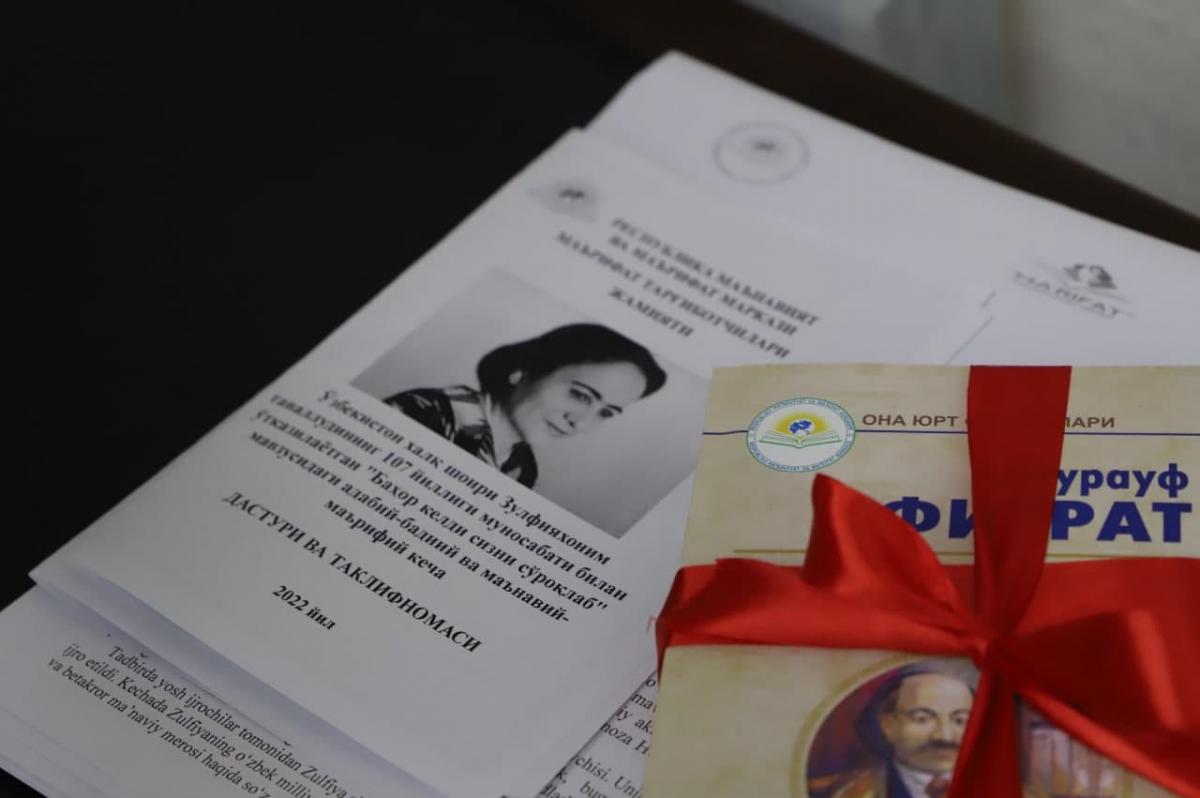 Bugun Respublika Maʻnaviyat va ma rifat markazida Alisher Navoiy nomidagi Toshkent davlat oʻzbek tili va adabiyoti universiteti bilan hamkorlikda shoira Zulfiya Isroilova tavalludining 107 yilligiga bagʻishlangan “Bahor keldi seni soʻroqlab” adabiy-badiiy kecha tashkil etildi. Unda shoirlar, ziyolilar, sheʼriyat ixlosmandlari va talabalar ishtirok etdi.