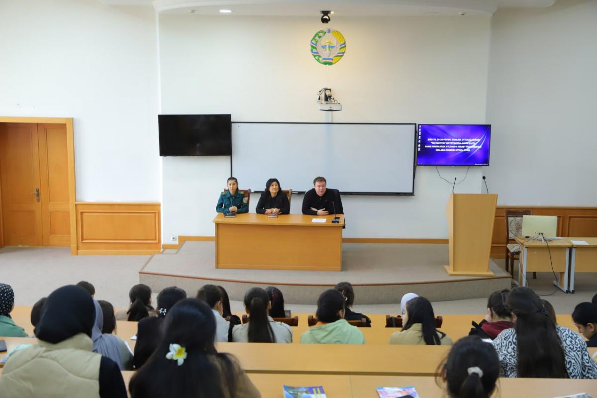 Oliy ta’lim tashkilotlarida har haftaning payshanba kuni “Talabalar xavfsizligi kuni” doirasida, shuningdek, Ichki ishlar vazirligi va Oliy ta’lim, fan va innovatsiyalar vazirligining 08.03.2025 yil kungi 15/11-son qarori ijrosini ta’minlash maqsadida Alisher Navoiy nomidagi ToshDO‘TAUda talabalar bilan uchrashuv o‘tkazildi. Tadbirda Toshkent shahar IIBB Tezkor-qidiruv xizmati Terrorizmga qarshi kurashish boshqarmasi boshlig‘i o‘rinbosari, podpolkovnik Ubaydullayev Azizbek Ubaydullayevich ishtirok etib, yoshlar orasida huquqbuzarliklarning oldini olish va xavfsizlikni ta’minlash borasida muhim ma’lumotlar berdi. Uchrashuv davomida din niqobi ostida yoshlar ongini zaharlashga uringan yovuz niyatli kimsalarning faoliyati va uning ayanchli oqibatlari haqida batafsil tushuntirish berildi. Talabalar o‘zlarini qiziqtirgan savollarga mutaxassislardan javob olishdi. Yoshlarimizning huquqiy savodxonligini oshirish va ularni turli xavf-xatarlardan ogoh etish maqsadida bunday uchrashuvlar muntazam tashkil etiladi.