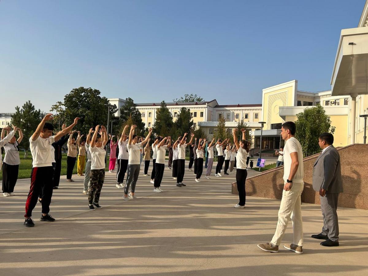 Universitet xotin-qizlar kengashi raisi G.Jo'rayeva hamda sport murabbiysi R.Alimboyeva boshchiligida universitet hovlisida va "Do'stlik" bog'i hududida turli mashqlarni bajarib, tani yayragan yoshlar kun davomida ham bardam bo'lib yuradilar. Shu nuqtayi nazardan bunday mashg'ulotlarning muntazam o'tkazib borilishi juda muhim.