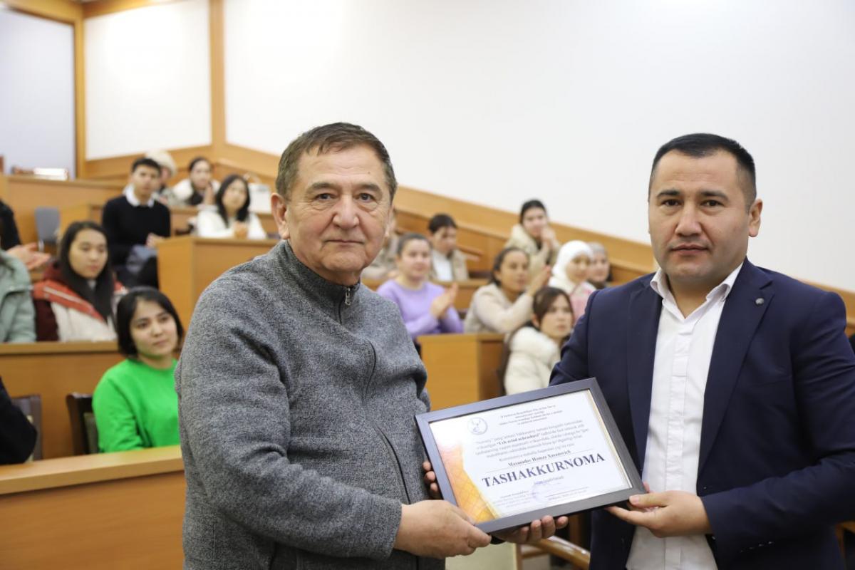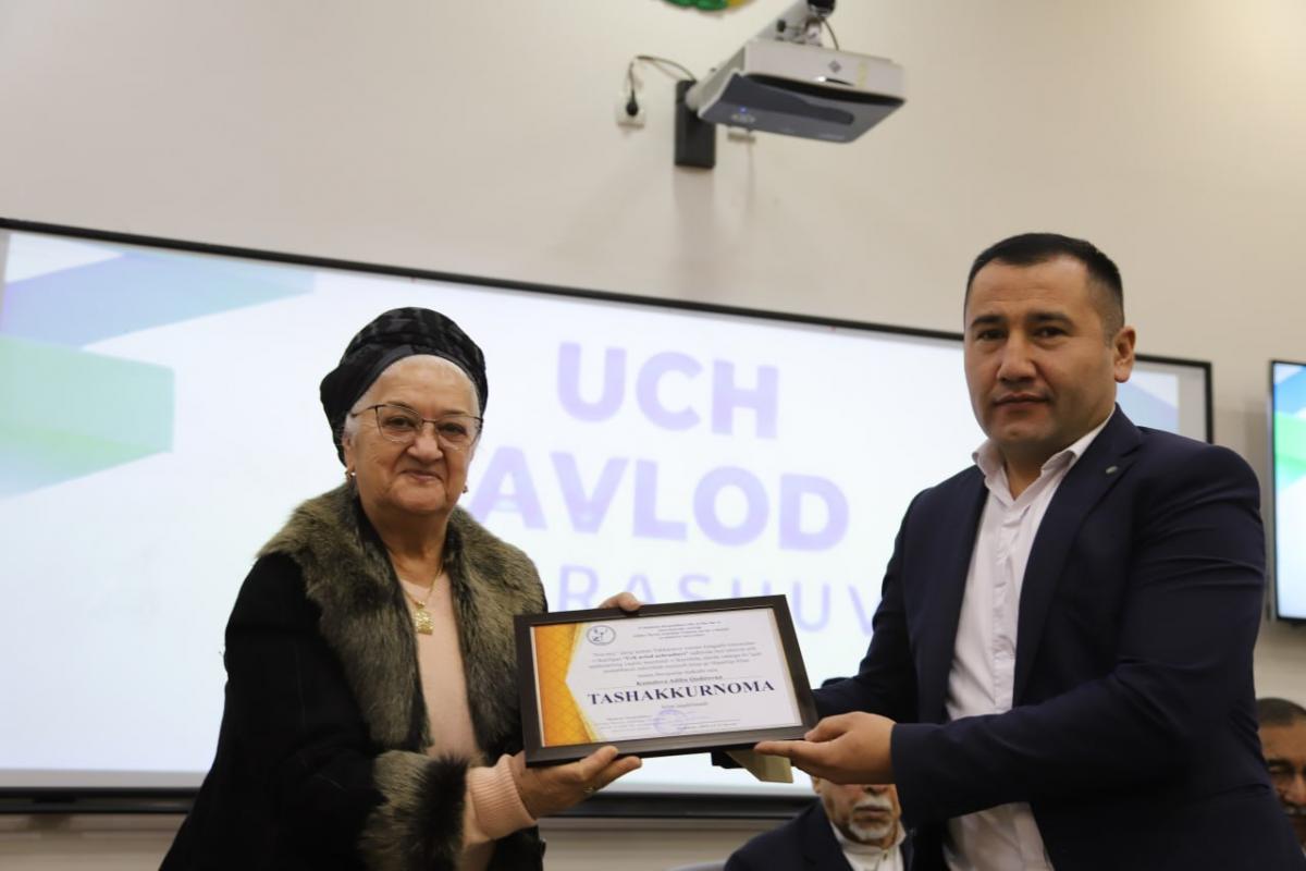 11-fevral kuni Alisher Navoiy nomidagi Toshkent davlat o‘zbek tili va adabiyoti universitetida “Nuroniy” jamg‘armasi Yakkasaroy tumani kengashi bilan hamkorlikda uch avlod uchrashuvi bo‘lib o‘tdi. Tadbirda nuroniylar, yoshlar hamda ziyolilar ishtirok etib, milliy qadriyatlar, ma’naviyat va tarbiya masalalari yuzasidan fikr almashdilar. Unda “Nuroniy” jamg‘armasi Yakkasaroy tuman kengashi raisi Sayfullaev Tolib Vaxobovich, tuman Buvijonlar maktabi raisi Kamalova Adiba Qadirovna, tuman Nuroniylar kengashi Jamoatchilik nazorati kengashi raisi Jamalov Fazliddin, “Nuroniy” jamg‘armasi faoli, O‘zbekiston Yozuvchilar uyushmasi a’zosi Toxirjonov Xamidjon, tuman Nuroniylar kengashi faoli Tulaganov Maxmud, Konstitutsiya mahalla fuqarolari yig‘ini raisi Maxmudov Hamza Xasanovich, tuman Nuroniylar kengashi faoli Raximov Muxammadjon Tursunovich, To‘qimachilik va yengil sanoat instituti dotsenti, tuman Nuroniylar kengashi faoli Muxamadiyorov Komiljon Sodiqovich, Konstitutsiya mahallasi Keksalar maslahati guruhi raisi Azimov Nasriddin, Konstitutsiya mahallasi faoli Atabekov Odil hamda “Nuroniy” jamg‘armasi Yakkasaroy tuman kengashi mutaxassisi Xaydavalov Burxon Pardaevich ishtirok etdilar. Uchrashuv davomida nuroniylar yosh avlodga ibratli hayot yo‘llari, tajribalari haqida so‘zlab, Vatanga sadoqat, milliy qadriyatlarga hurmat kabi tushunchalarning ahamiyatini ta’kidladilar. Yoshlar esa o‘zlarining kelajak rejalari, kasbiy maqsadlari va milliy merosga bo‘lgan e’tiborlarini izhor etdilar. Mazkur uchrashuv avlodlar o‘rtasidagi uzviylikni mustahkamlash, ma’naviyat va tarbiya borasidagi tajribalarni yoshlar bilan bo‘lishish hamda ularning yuksak maqsadlar sari intilishlariga ko‘maklashish maqsadida tashkil etildi. Uchrashuv qizg‘in muloqot va iliq taassurotlar bilan yakunlandi.