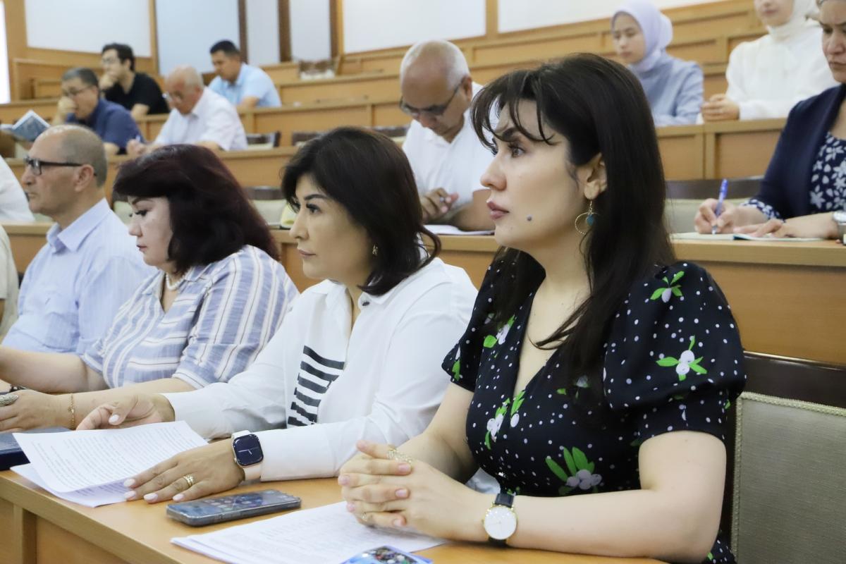 Yig‘ilishda 2025-yil may oyida qabul qilingan O‘zbekiston Respublikasi qonunlari, Prezident farmonlari, Vazirlar Mahkamasining qarorlari va topshiriqlari, shuningdek, Oliy ta’lim, fan va innovatsiyalar vazirligi qarorlari va buyruqlari ijrosi to‘g‘risida f.f.d., akademik Shuhrat Sirojiddinov ma’ruza qildi. Yuqori tashkilotlardan kelgan hujjatlarning ijro etilishi holati haqida Monitoring bo‘limi boshlig‘i Ra’no Azizova so‘zga chiqdi. Ilmiy unvonlarga tavsiya etish masalalari f.f.d., professor Sulton Normamatov tomonidan ko‘rib chiqildi. 2025/2026-o‘quv yiliga o‘quv-uslubiy tayyorgarlik jarayoni va yangi o‘quv yilida o‘qitiladigan tanlov fanlarini tasdiqlash masalasi O‘quv-uslubiy boshqarma boshlig‘i Vahob Nazarov tomonidan taqdim etildi. Oliy ta’limdan keyingi ta’lim bosqichining mustaqil izlanuvchilik institutiga 2025-yil 3-chorakdagi qabul natijalari haqida f.f.d., professor N.Normurodova ma’lumot berdi. Universitet talabalarining yozgi ta’til davrida doimiy yashash joyiga jo‘nab ketishi va ta’til vaqtini mazmunli tashkil etish masalalari f.f.d., professor Gulnoza Jo‘rayeva tomonidan muhokama qilindi. Shuningdek, yig‘ilishda turli dolzarb masalalar ham ko‘rib chiqildi. Universitet hayotining asosiy yo‘nalishlari va kelajakdagi rejalari muhokama qilindi va barcha manfaatdorlar faol ishtirok etdi.